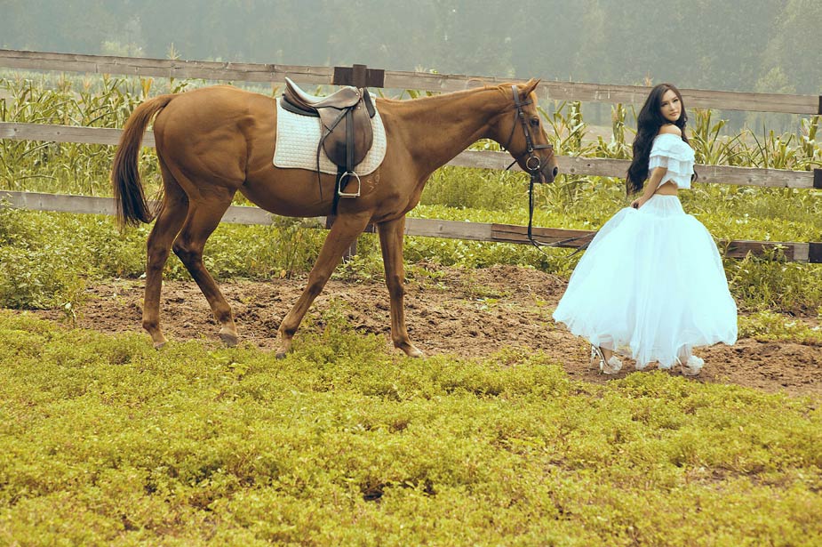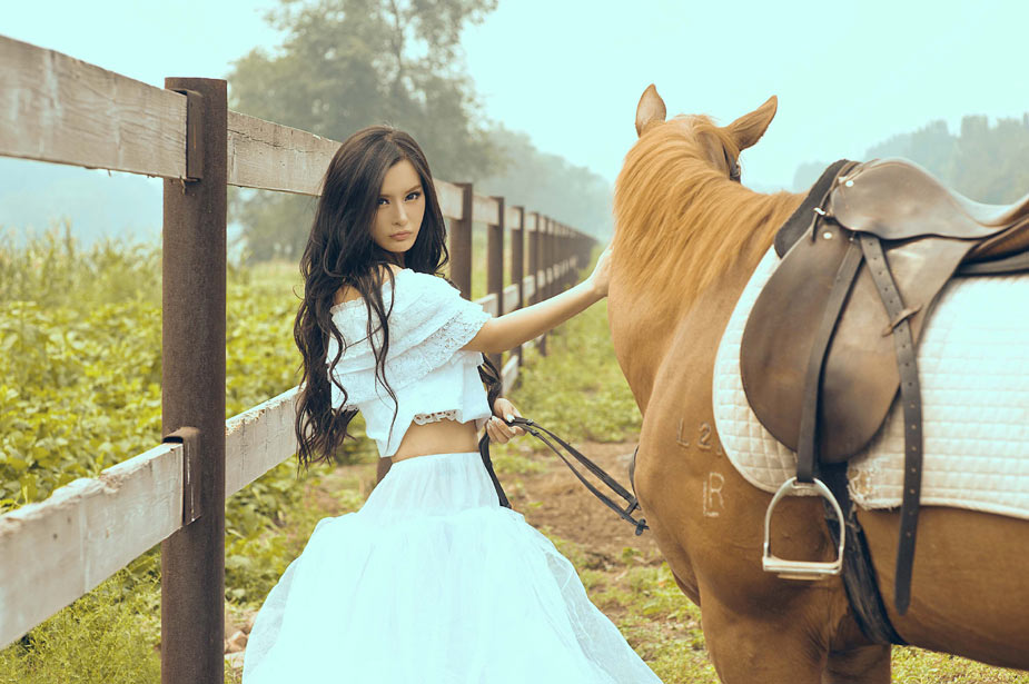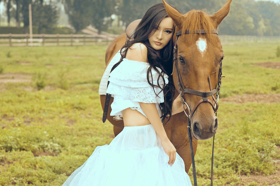 近日,有小范冰冰之稱的足球寶貝楊棋涵來到馬場拍攝一組寫真,嫵媚動人彰顯性感魅力,廣闊的天空襯托她高挑的身材更具時尚感。