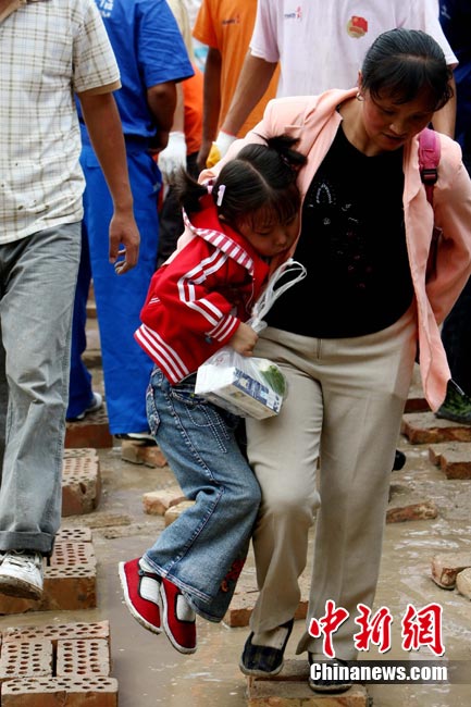 8月19日,甘肅舟曲城關二小開始報名,當地學生陸續來到學校。當地通知,全縣鄉鎮、村義務教育階段中小學,全部于8月25日開學。圖為張華榮、張華耀兄弟倆去學校報名。中新社記者 杜洋 攝