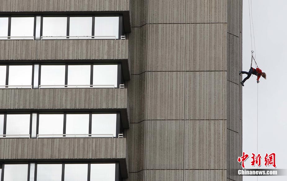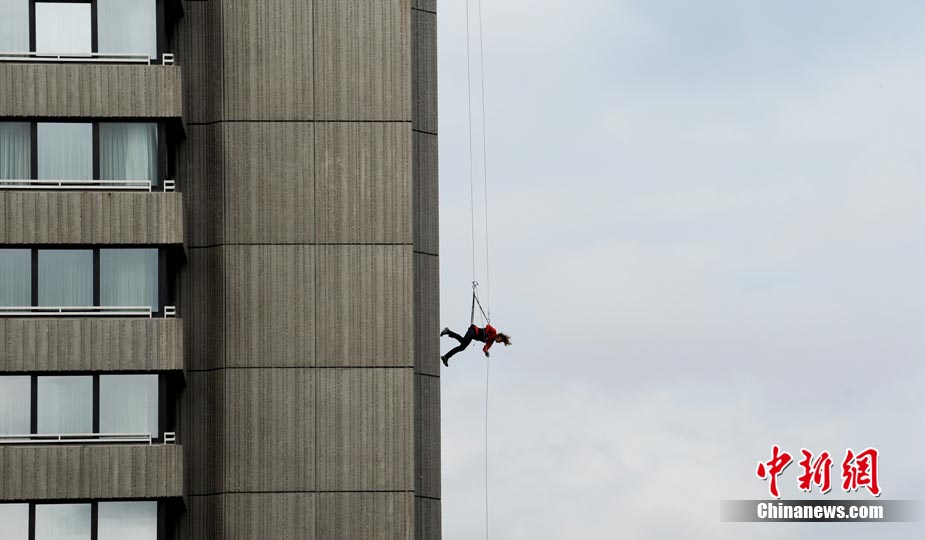 8月19日,德國視障滑雪運動員、殘奧會越野滑雪比賽金牌得主瓦瑞那·本特勒在德國南部城市慕尼黑參加“高樓漫步”活動。