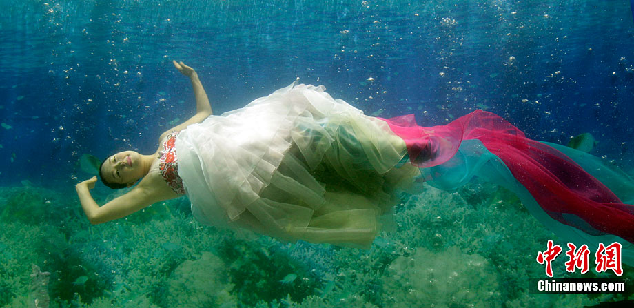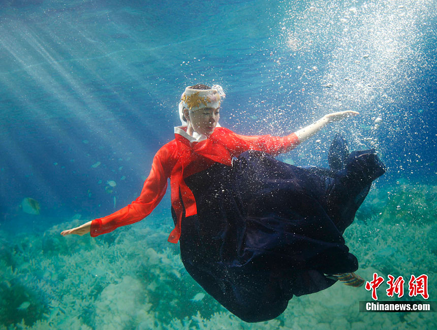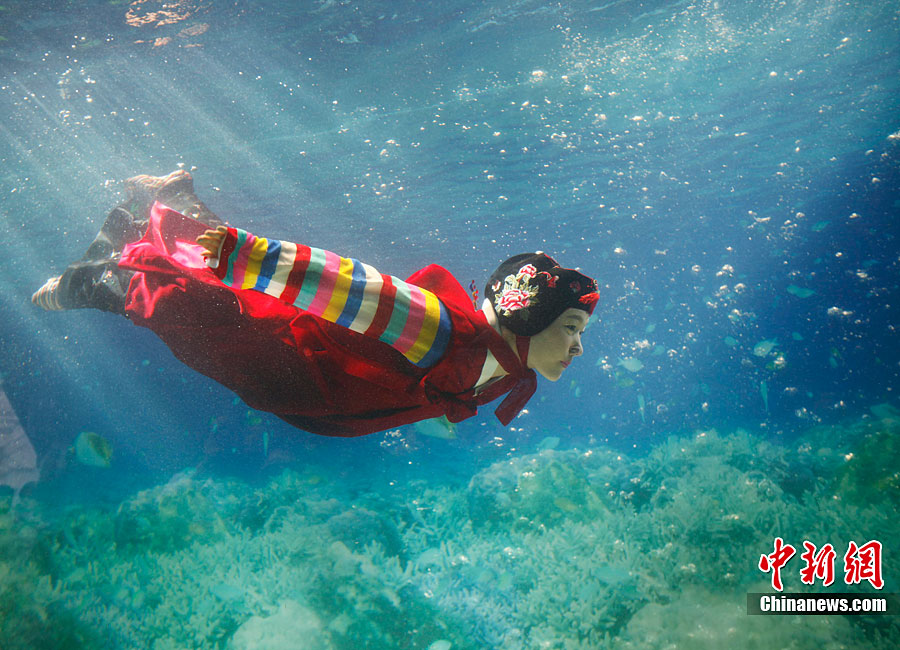 美侖美奐的水下韓服秀