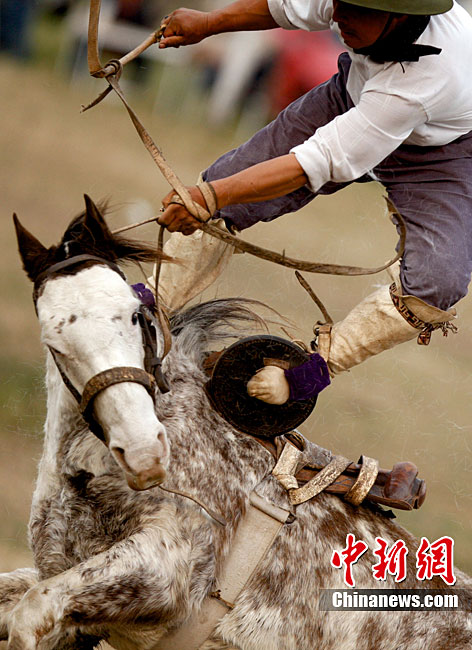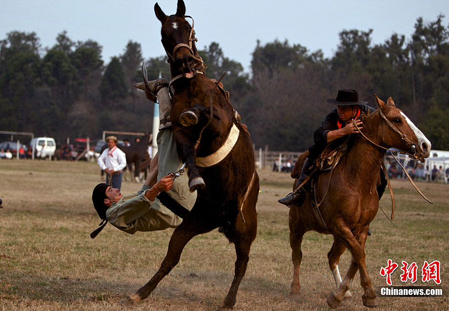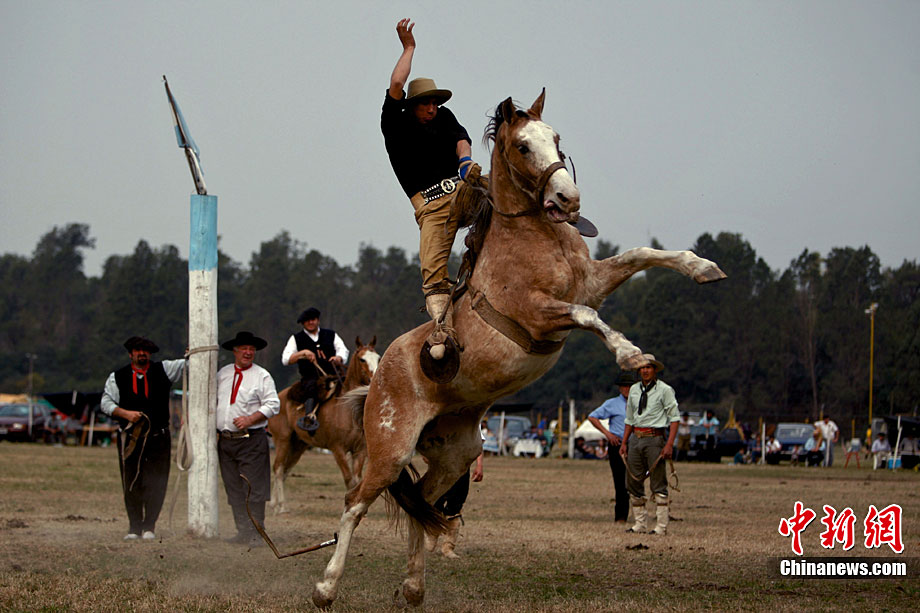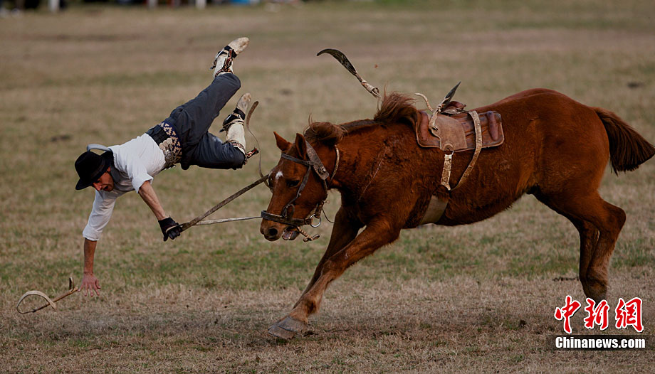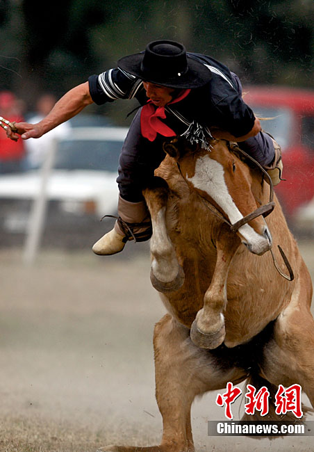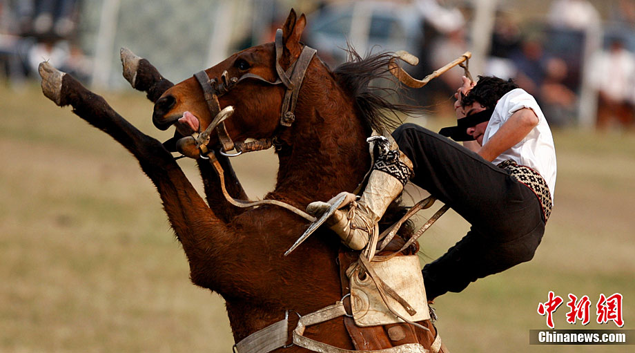 當地時間8月22日,阿根廷小鎮豪雷吉舉行了傳統的高喬民俗節馬術表演。驚險刺激的馬術表演使觀眾們看到了別樣風俗。
