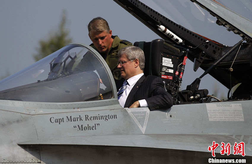 當地時間9月1日,加拿大米拉貝爾,加拿大總理哈珀參觀L-3通信公司,并坐進一架CF-18“大黃蜂”戰斗機駕駛艙進行體驗。