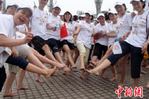 9月4日,一群全副武裝、手持鐵錘的都市人在長沙世界之窗內廣場上瘋狂錘砸廢舊小鐵屋,以此宣泄心中的壓力。據悉,為幫助都市人群釋放因工作、生活帶來的壓力和郁悶,長沙世界之窗從當日開始舉行為期一個月的減壓節。主辦方將收集來的摩托車、小車、電視機、洗衣機等廢舊設備擺放在預設的場地內,每天召集數十名游客參與其中。 中新社記者 肖前輝 攝