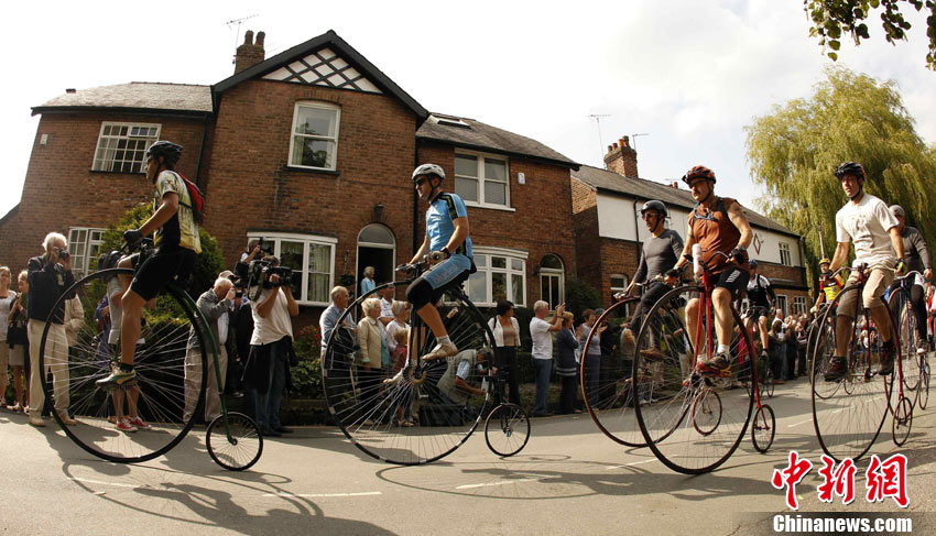 近日,英國(guó)大納茨福德舉行了復(fù)古自行車比賽。該項(xiàng)比賽每十年舉行一次,參賽者來自世界各地。他們須在三個(gè)小時(shí)的限時(shí)內(nèi)沿著一公里長(zhǎng)的賽道進(jìn)行騎行比賽。