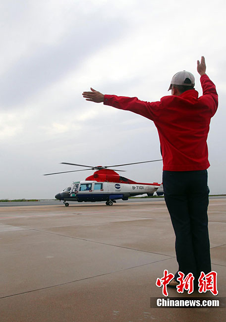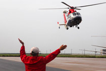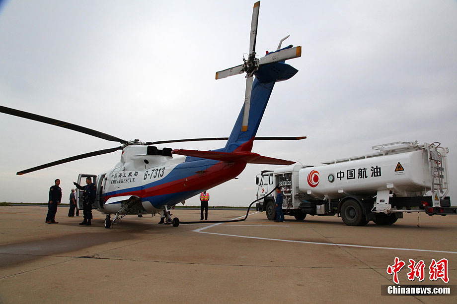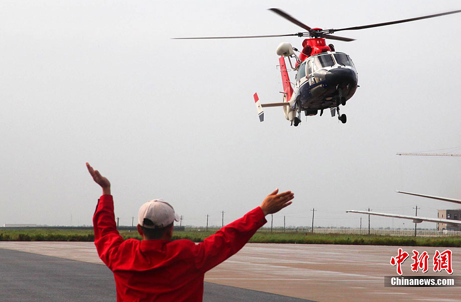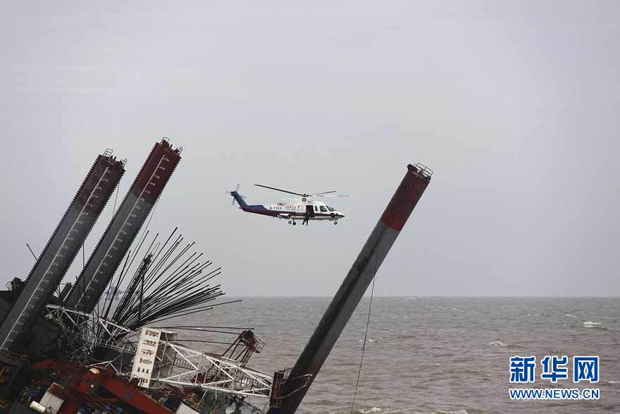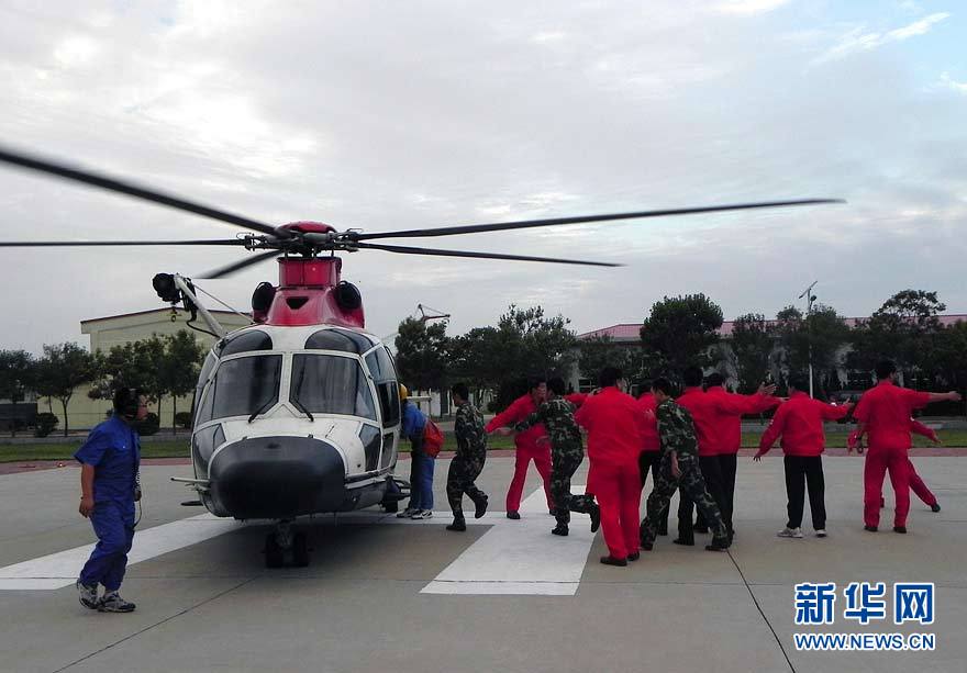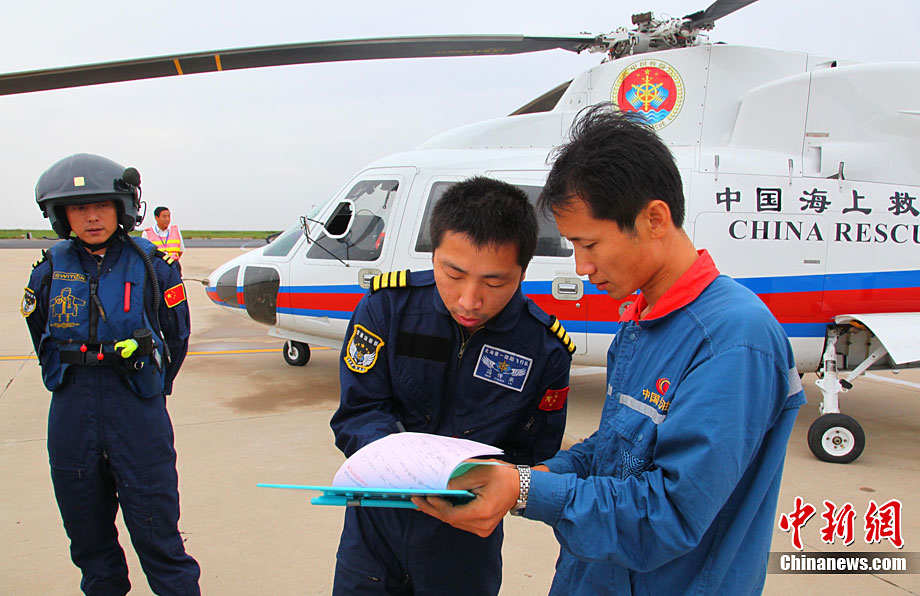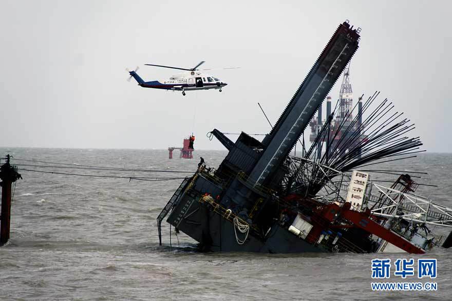 9月8日,交通運(yùn)輸部北海第一救助飛行隊(duì)救援人員駕駛直升機(jī)在傾斜的山東東營(yíng)勝利油田3號(hào)鉆井平臺(tái)事故現(xiàn)場(chǎng)搜救。 9月7日23時(shí),山東東營(yíng)勝利油田位于渤海的作業(yè)3號(hào)鉆井平臺(tái),因傾斜遇險(xiǎn),平臺(tái)上4人落水,32人被困平臺(tái)。中國(guó)海上搜救中心連夜救助,目前已有34人獲救,救援人員正在全力搜救2名失蹤人員。圖片來(lái)源:新華網(wǎng)