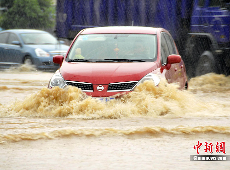 9月9日,四川省南充市突降暴雨,造成該市的高坪、嘉陵、順慶等主城區部分低洼地帶積水嚴重。高坪區第八小學、第六小學,嘉陵區光彩實驗小學被洪水圍困,南充消防官兵緊急出動,及時將被洪水圍困900多名小學生轉移至安全地帶。圖為消防、老師正在轉移受困學生。中新社發 南消萱 攝