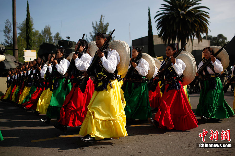當?shù)貢r間9月10日,墨西哥獨立200周年慶典彩排在墨西哥城舉行。這次彩排是為即將于9月16日舉行的慶墨西哥獨立革命200周年的大閱兵作準備。