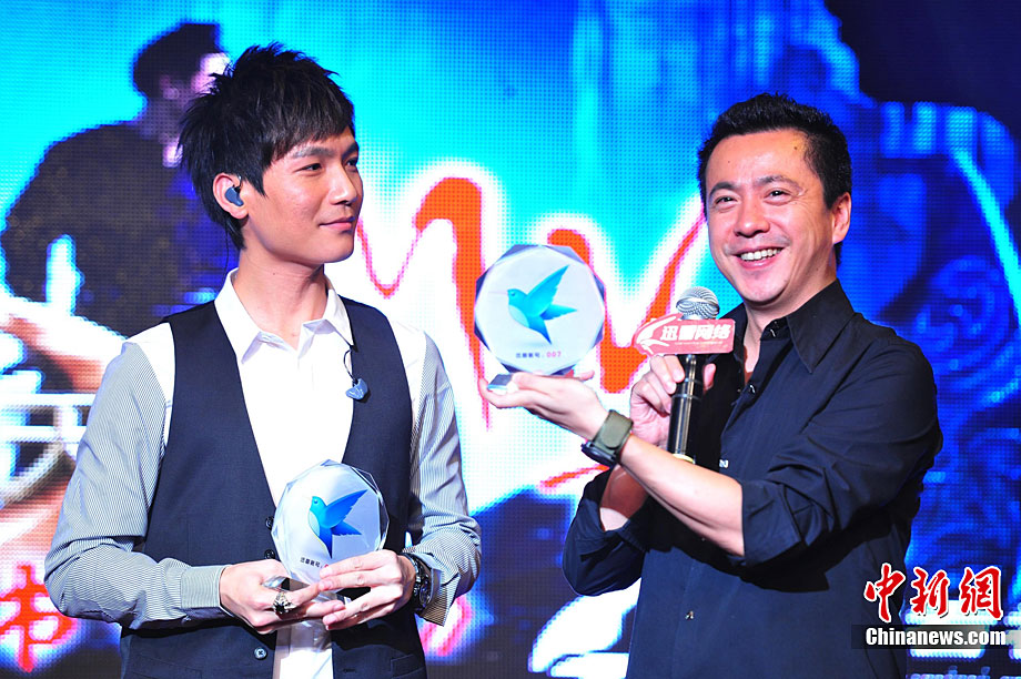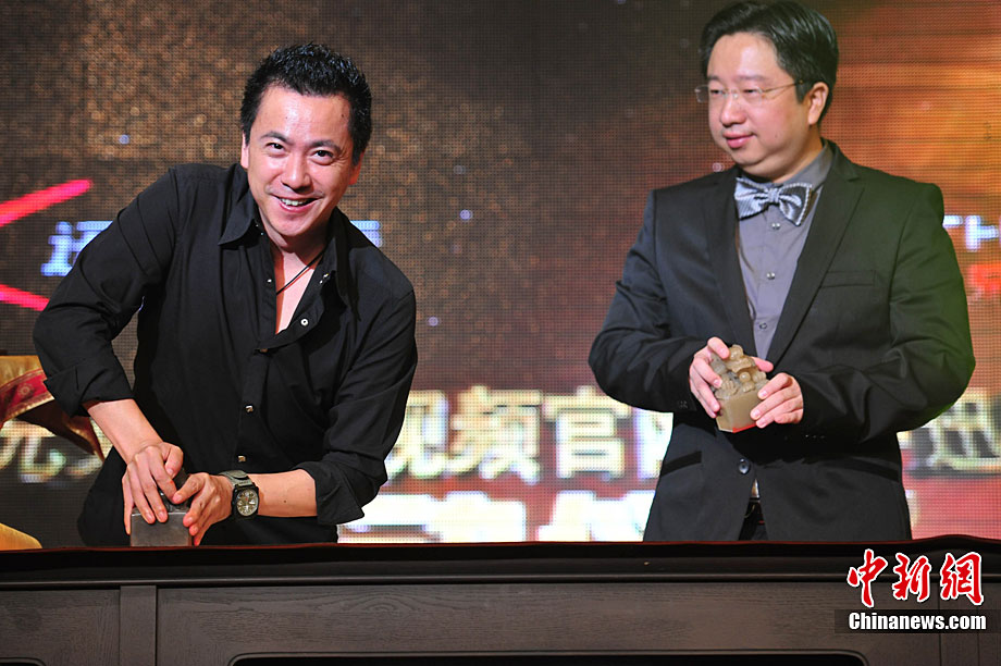 由華誼兄弟出品發行的華語大片《狄仁杰之通天帝國》將于9月29日上映。9月12日,電影主題曲《丹書鐵契》MV正式發布,陳楚生將這首頗具古韻的歌曲演繹得氣象萬千頗具氣魄,同時他還在發布會現場演唱電影宣傳曲《相忘于江湖》。他透露兩首歌的聲音與以前不同全因錄歌時感冒,而錄音師正好希望他的嗓音滄桑一點。華誼兄弟首席視頻官網也于當天落戶迅雷,有關《狄仁杰之通天帝國》的視頻花絮將會在官網上同步更新。圖為陳楚生獲贈大禮。中新社記者 李學仕 攝