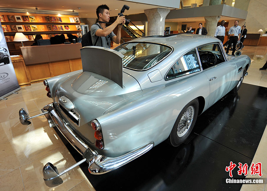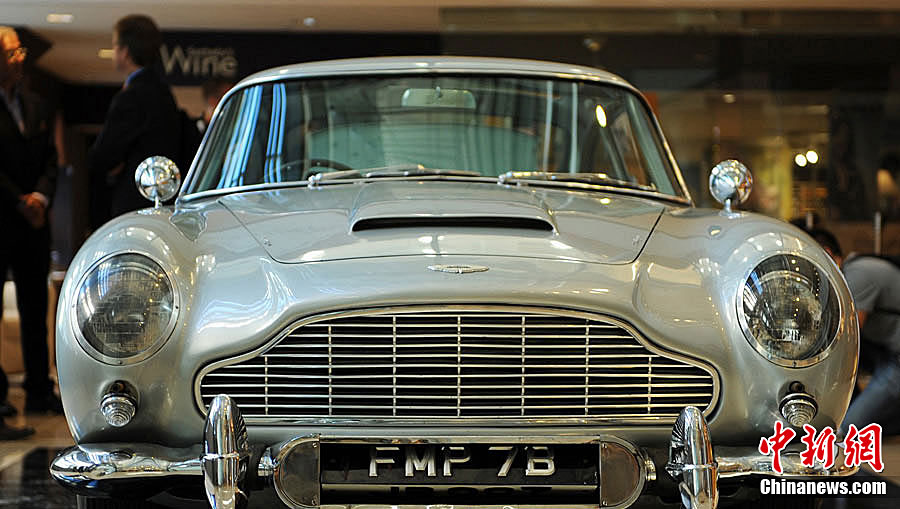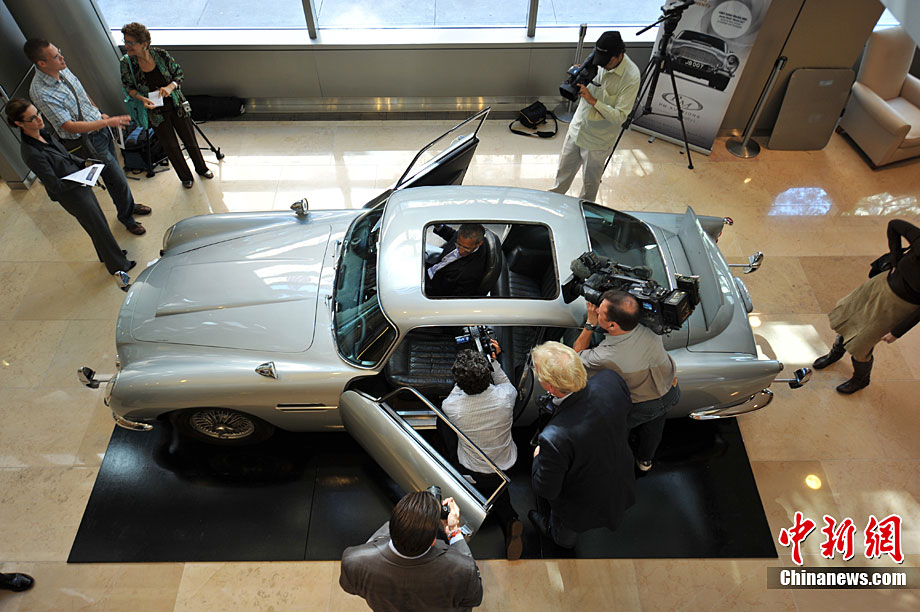曾經在“007”系列電影《金手指》和《雷霆萬鈞》中作為主人公詹姆斯·邦德座駕的阿斯頓·馬丁DB5跑車將于2010年10月27日在英國倫敦巴特西公園(Battersea Evolution)拍賣。圖為這款轎車正在美國紐約蘇富比拍賣行展出。