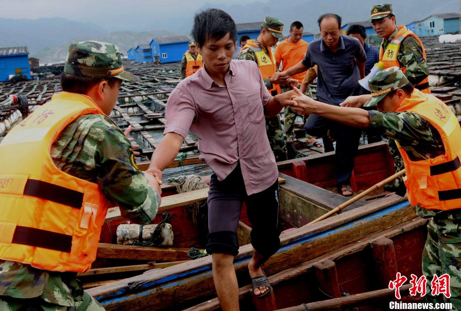 9月20日7時,今年第11號臺風“凡亞比”在福建省漳浦縣沿海登陸。 圖為9月19日,福建省連江縣海上養殖人員在轉移上岸。為防抗今年第11號超強臺風“凡亞比”來襲,福建省連日來展開人員梯次轉移。據福建省防汛辦統計,截至9月19日12時,福建全省共轉移海上作業人員18萬人,其中近3.1萬漁排作業人員和14.95萬漁船作業人員已全部安全轉移上岸,出海作業的5.5萬艘漁船也已全部進港避風。張國俊攝 圖片來源:新華網