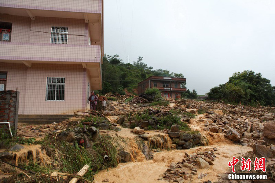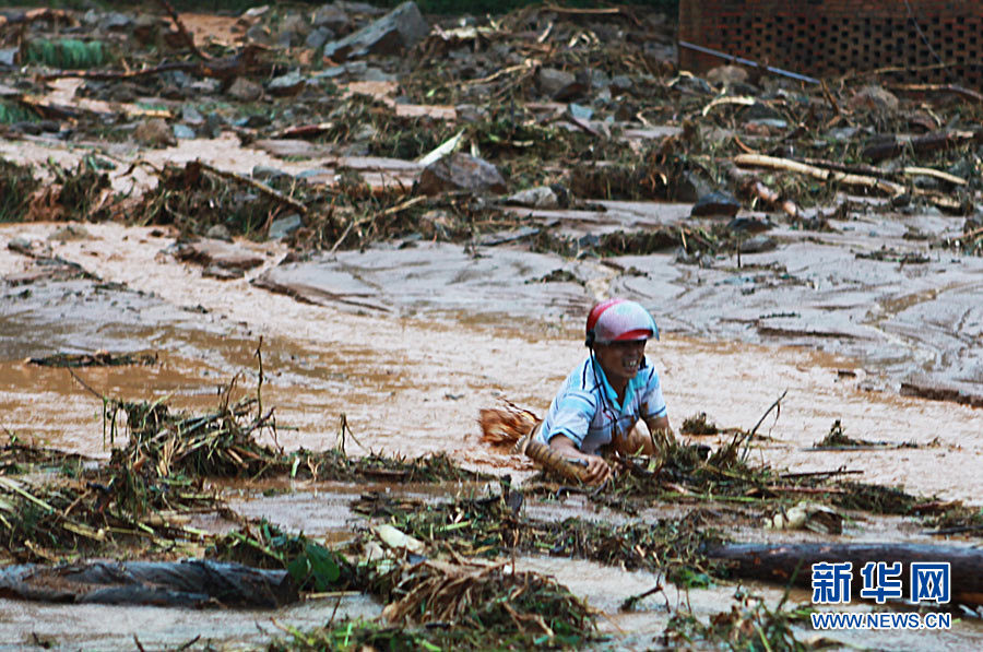 據(jù)廣東省防總消息,截至21日23時(shí),“凡亞比”造成廣東高州市、信宜市、陽春市三市共死亡13人,失蹤33人。圖為暴雨引發(fā)山洪災(zāi)害。中新社發(fā) 聞達(dá) 攝