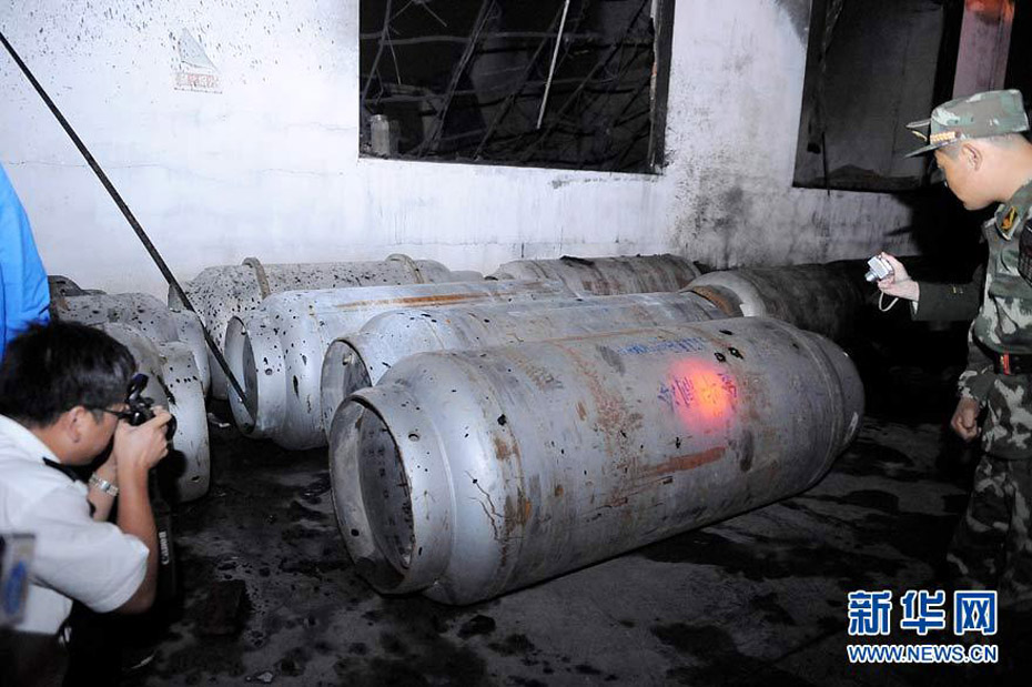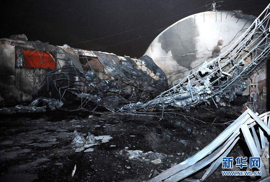 9月25日,消防官兵在火災現場進行撲救。當日晚間,烏魯木齊國際機場跑道東側圍墻外一家“恒利擠塑板廠”發生火災并有爆炸,由于有爆炸物散落到機場跑道,烏魯木齊國際機場關閉了一個小時,清理跑道。圖片來源:新華網 王菲 攝