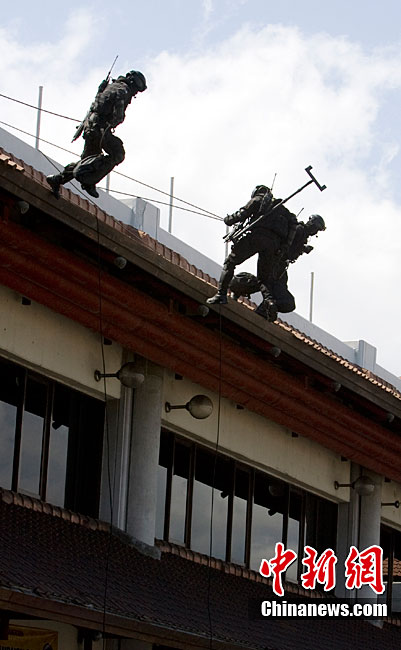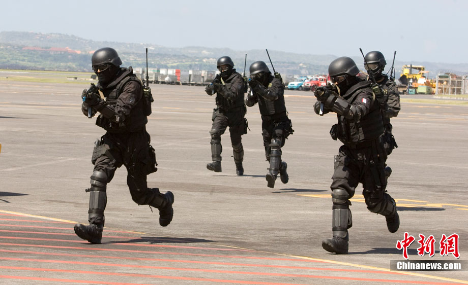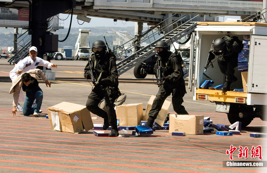 當地時間9月28日,印尼特種部隊和澳大利亞反恐部隊在印度尼西亞巴厘島國際機場舉行了聯合反恐演習。
