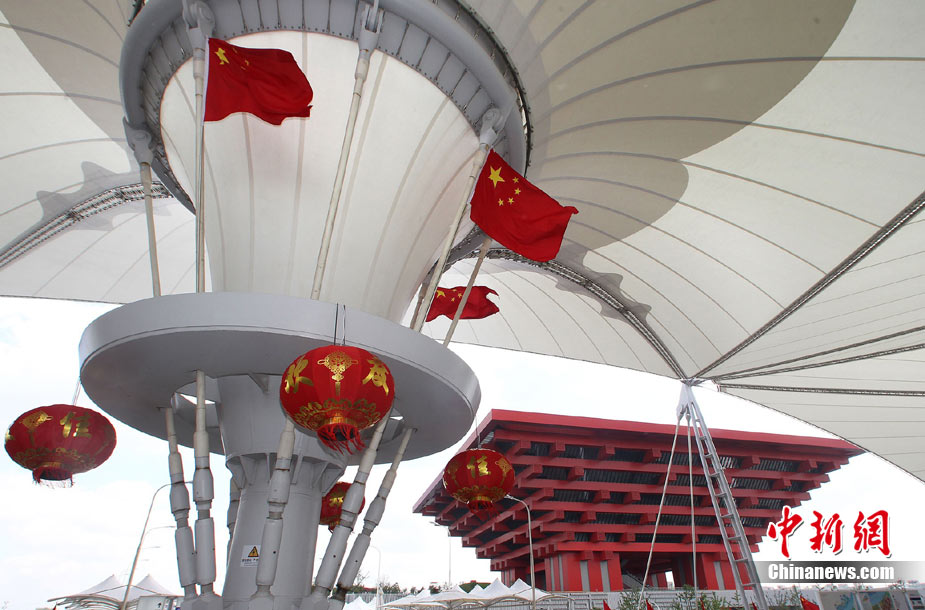 9月30日,上海市晴空萬里白云朵朵,上海世博會中國國家館日活動將于10月1日舉行。中新社記者 任晨鳴 攝