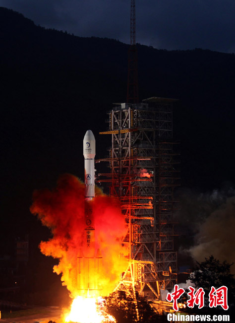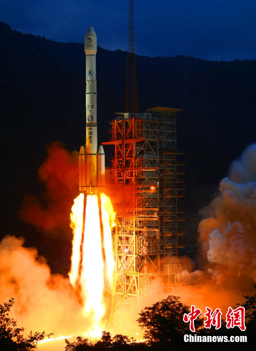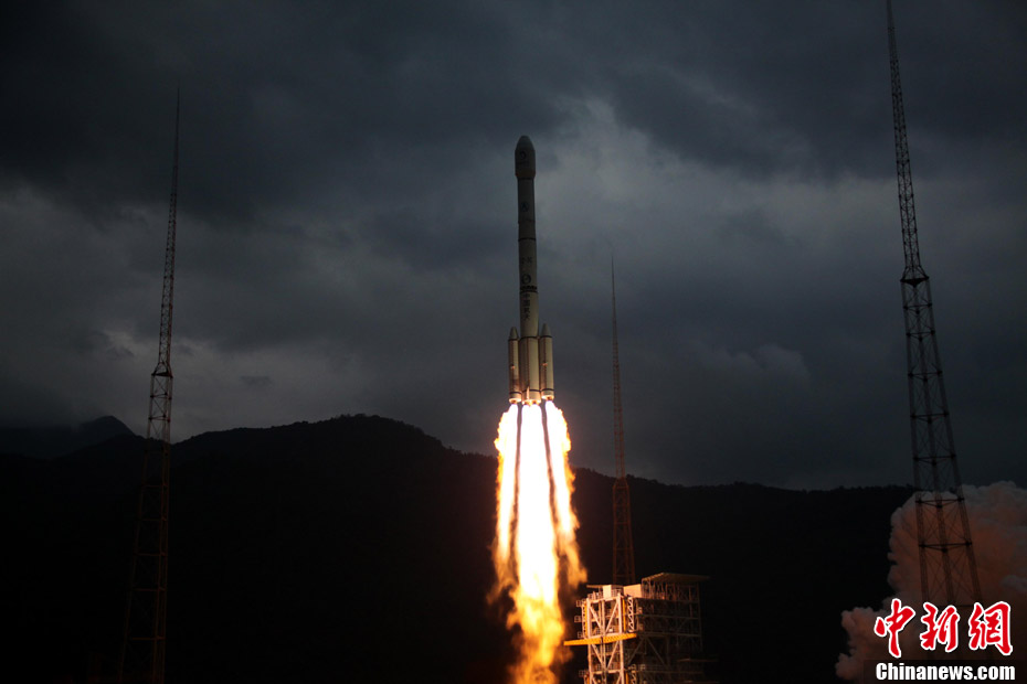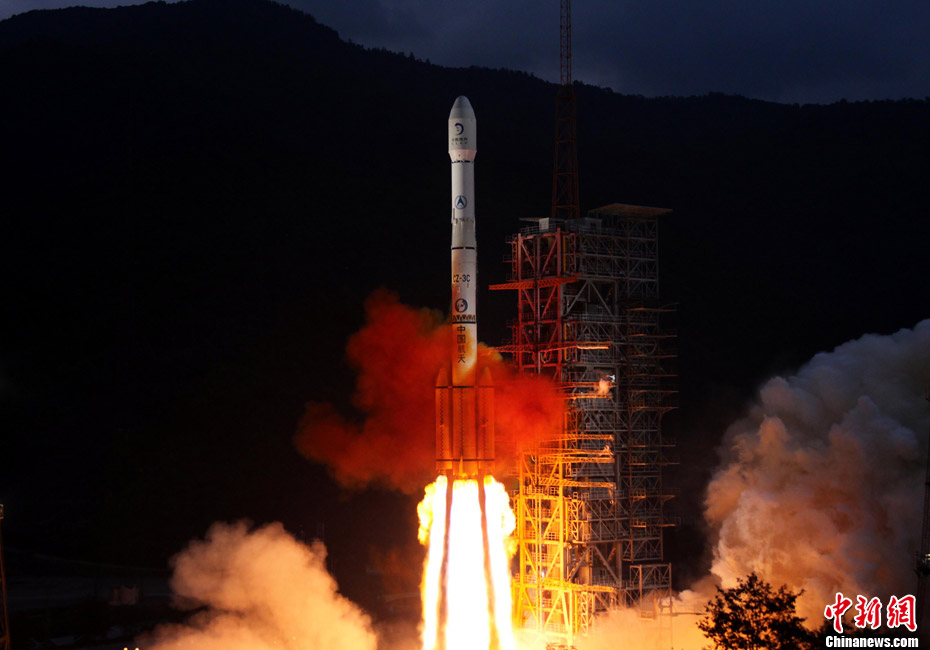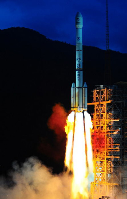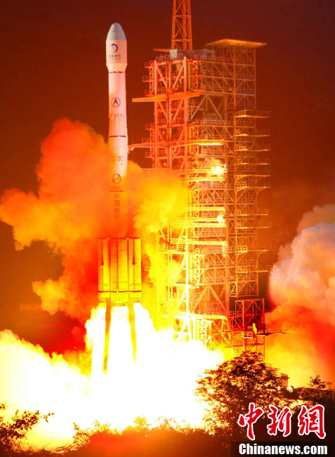 2010年10月1日18時59分57秒,中國探月工程二期的技術先導星“嫦娥二號”在西昌衛星發射中心由“長征三號丙”運載火箭發射升空。中新社記者 宋吉河 攝