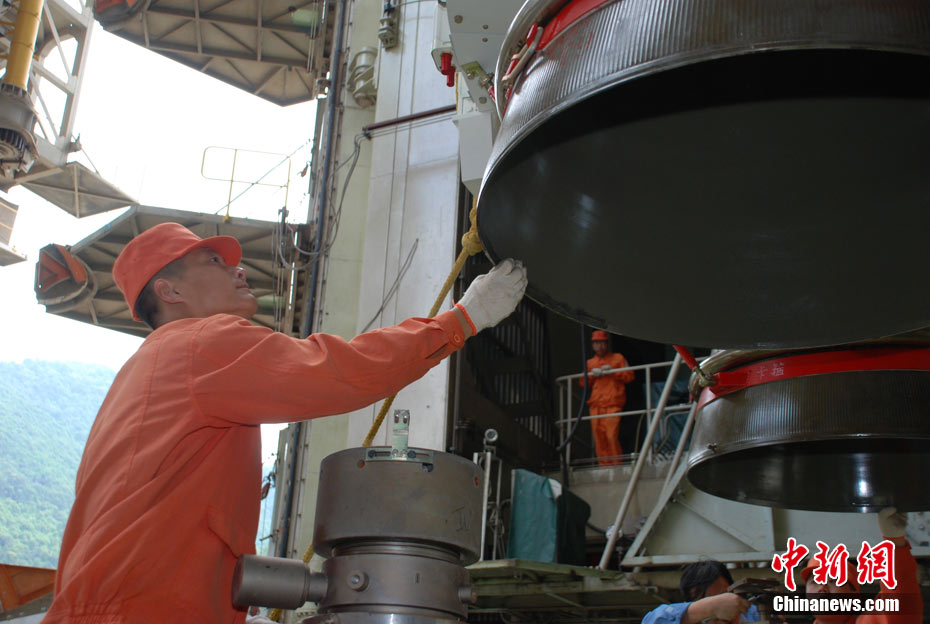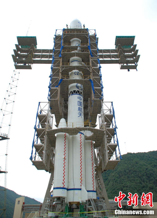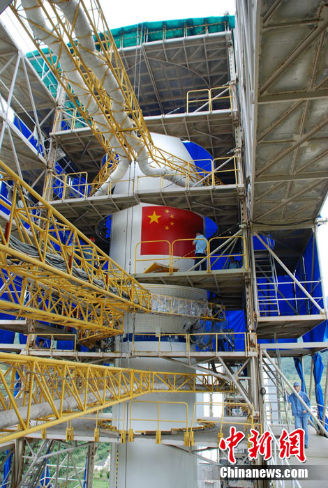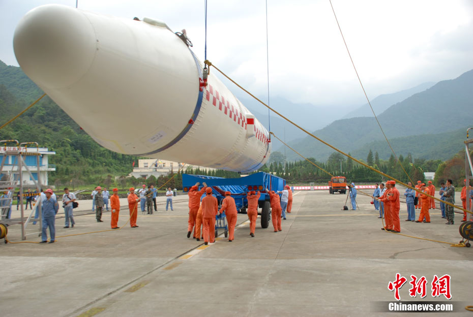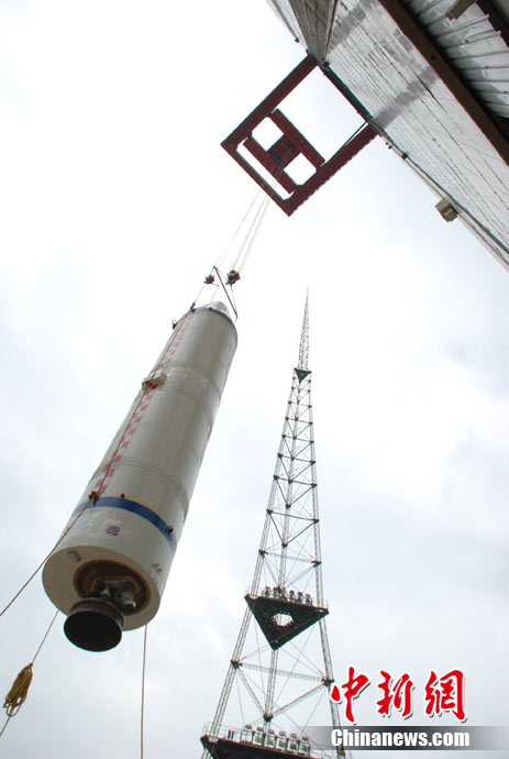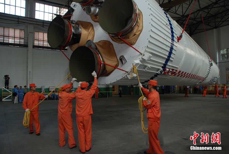 繼嫦娥一號衛星圓滿完成我國首次繞月探測工程之后,嫦娥二號繞月探測衛星作為我國探月工程二期的先行者,又踏上了奔月的征程。2010年9月中旬以來,西昌衛星基地緊鑼密鼓地為“嫦娥二號”衛星發射做了大量的準備工作。圖為吊裝火箭助推場景。 中新社發 張雷 王銳 攝 圖片來源:cnsphoto