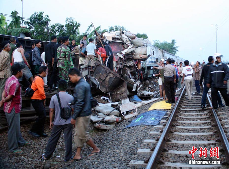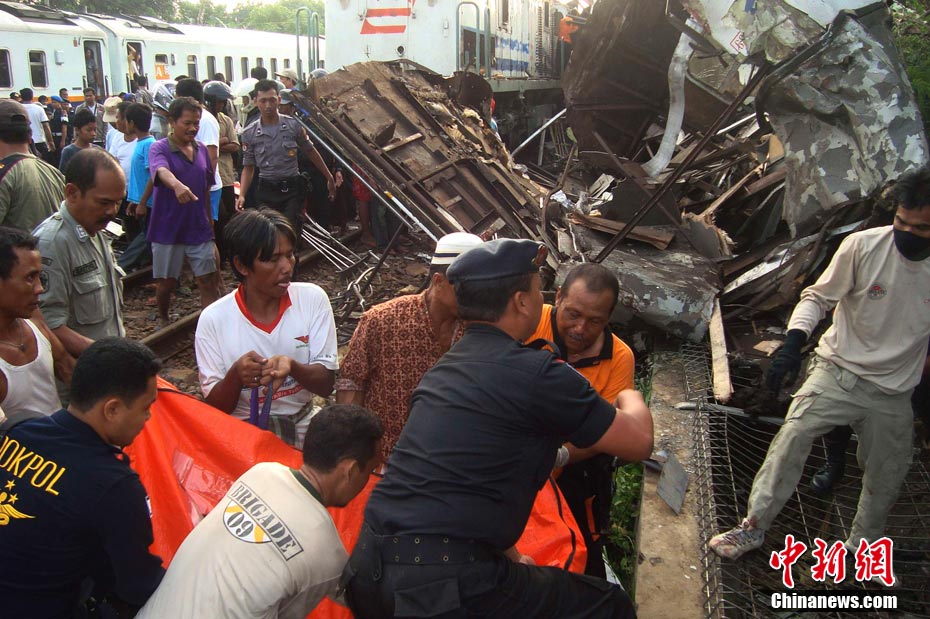 印尼中爪哇省2號發生火車相撞事故,至少已造成33人死亡。 事發在中爪哇北岸的珀塔魯坎,一列行駛中的列車,于凌晨約3點鐘,撞向一列停在車站內的列車,當時大部分人都在睡眠中,因此事故造成嚴重傷亡。