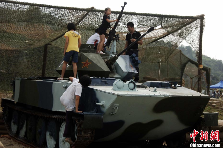 10月3日,福州游客到位于閩侯白沙灣的軍博園過把軍事癮。該軍博園濃縮薈萃了人民解放軍陸、海、空三軍的各類軍械裝備,其中還有經(jīng)歷實(shí)戰(zhàn)洗禮、屢獲戰(zhàn)功的功勛裝備。軍博園里還設(shè)置了軍事體驗(yàn)項(xiàng)目,游客可以現(xiàn)場乘坐水陸兩用坦克,飛機(jī)駕駛室操縱、電動25海炮操作等等。