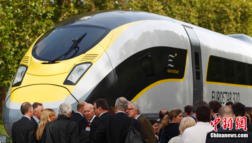 當地時間10月7日,新一代歐洲之星快速列車在英國倫敦舉行了媒體活動。據悉,新車時速最高可達320公里每小時,最多可搭載900名乘客,車廂內新配備了無線網絡系統,實時旅游信息系統和娛樂設施。新列車投入運營后,從巴黎到倫敦的旅行時間將縮短到2小時。