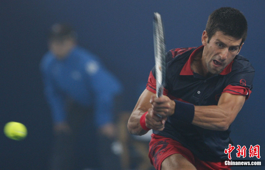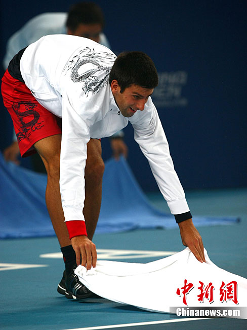 10月10日,總獎金額為210萬美元的ATP'500中網公開賽進入最后一天的爭奪,衛冕冠軍德約科維奇與西班牙名將費雷爾之間的男單決賽因雨中斷,比賽暫停時小德以3-1的比分暫時領先。中新社記者 富田 攝