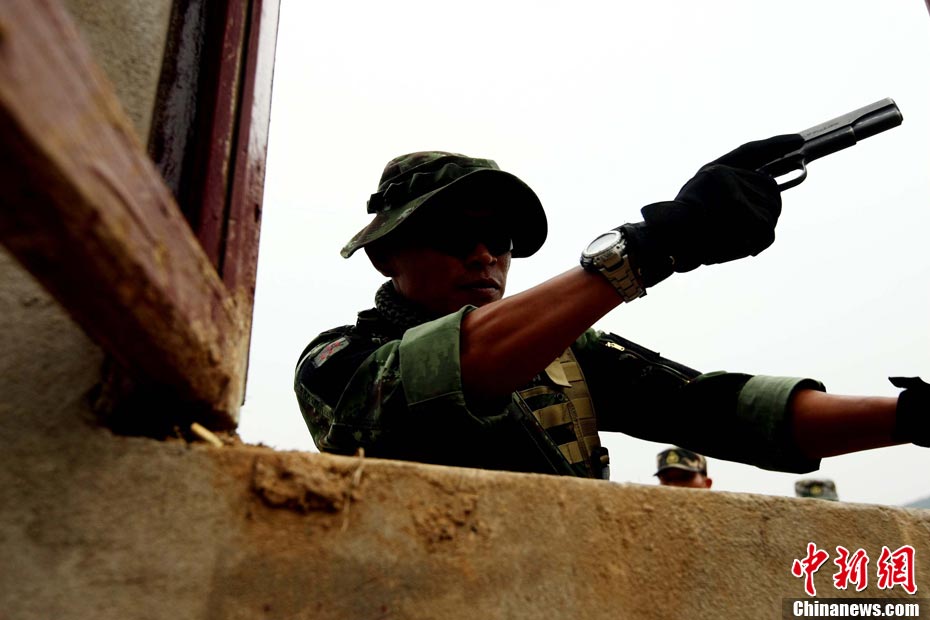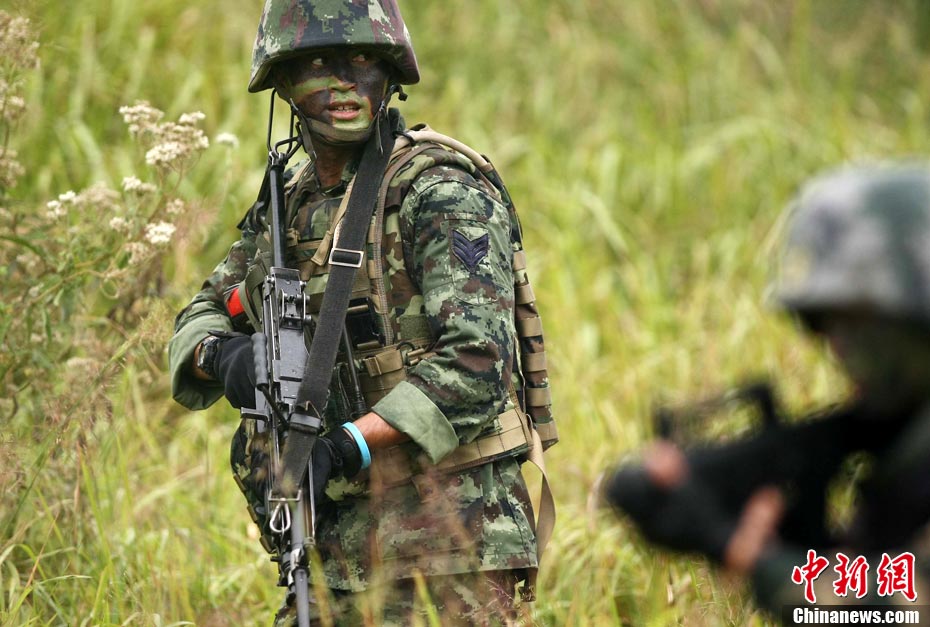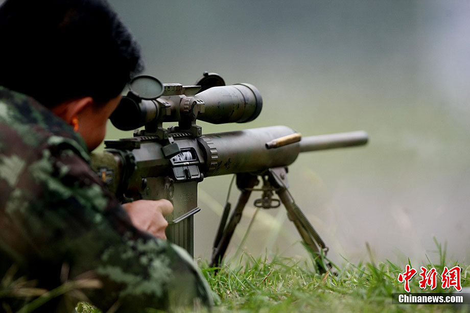 “突擊-2010”中泰陸軍特種部隊反恐聯合訓練10月6日至20日在廣西壯族自治區桂林進行。圖為身著偽裝服的狙擊手。中新社記者 杜洋 攝