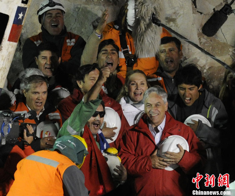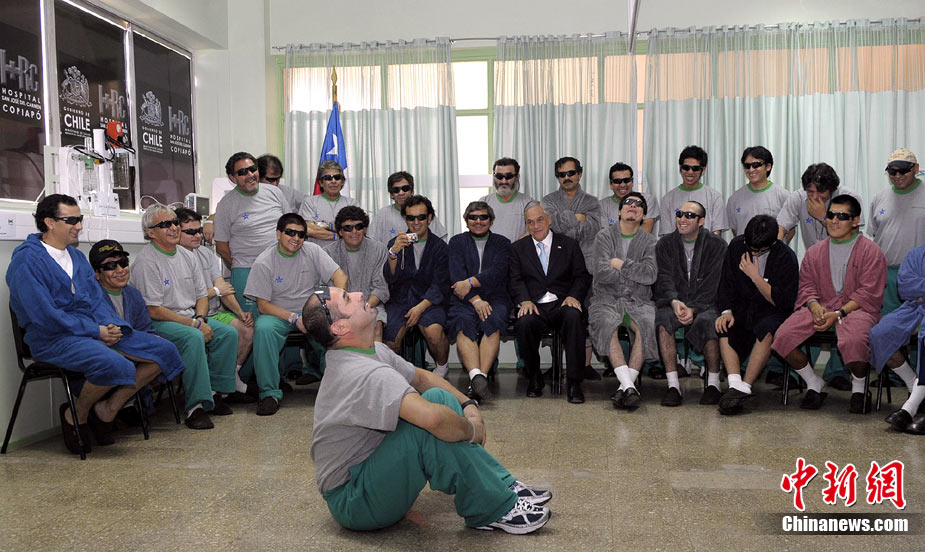 10月14日,智利總統皮涅拉會見了所有33名圣何塞銅礦獲救的被困礦工。33位在礦井下被困兩個多月的礦工周三被全部救出。據醫生說,這些獲救礦工的大多數健康狀況良好。