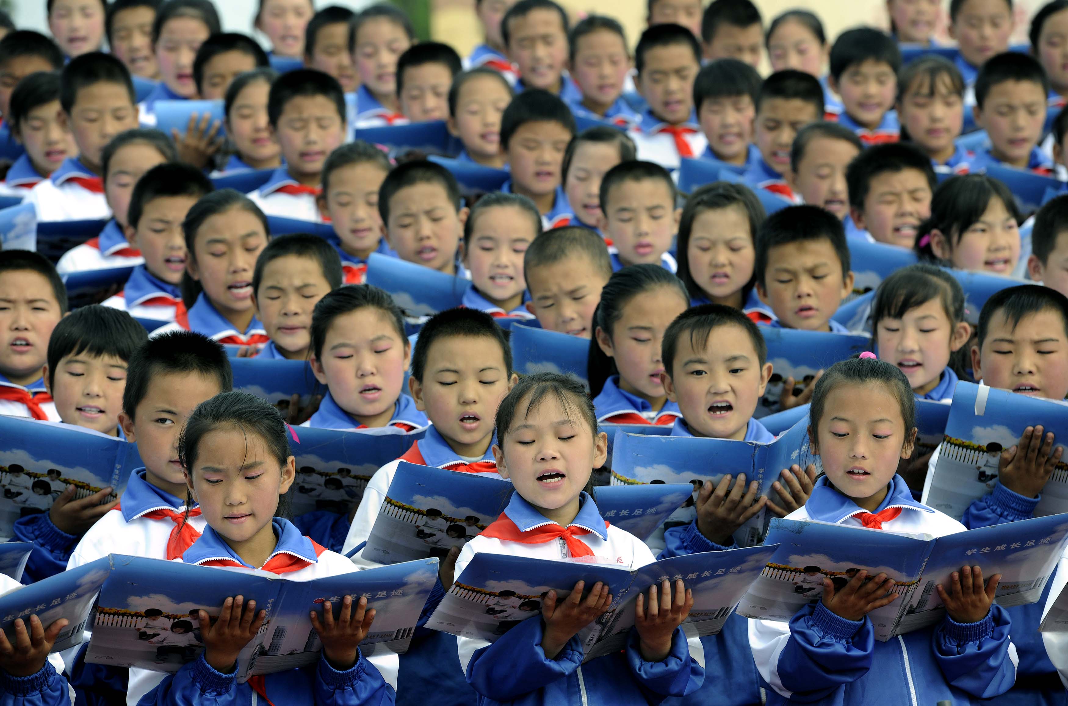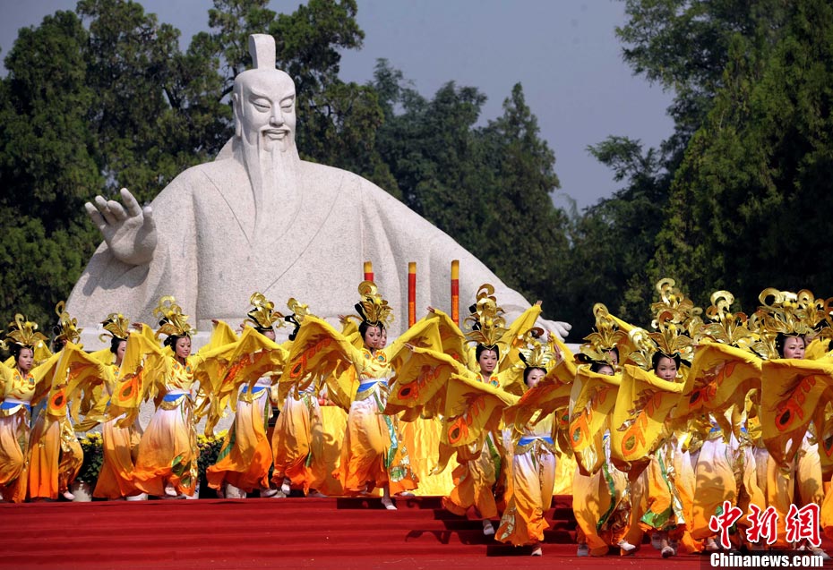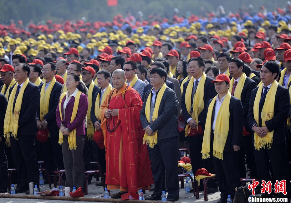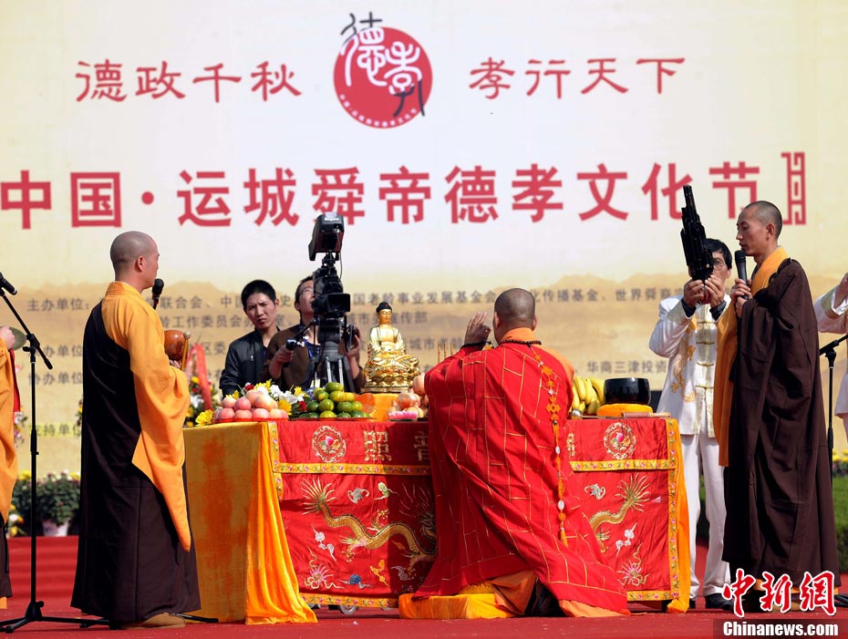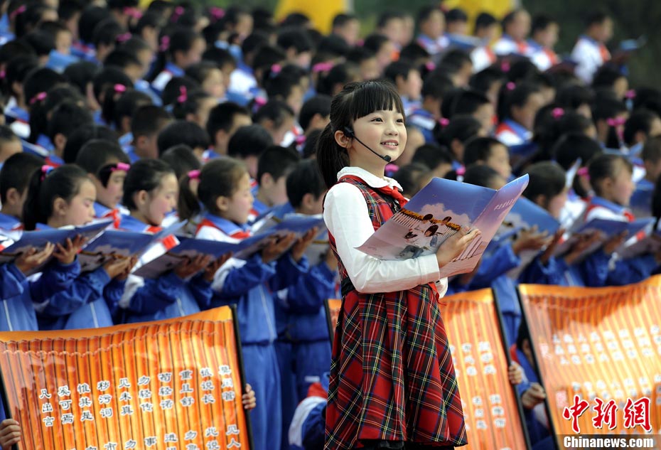 10月16日,運城舜帝德孝文化節在山西省運城市鹽湖區鳴條舜帝陵開幕。舜帝以其獨特的歷史地位和杰出的歷史功績,被后人尊崇為“百孝之首”、“道德之祖”和“文明之元”,本屆文化節主題也定義為“德政千秋、孝行天下”。圖為運城千名小學生齊誦《弟子規》。中新社發 劉震 攝