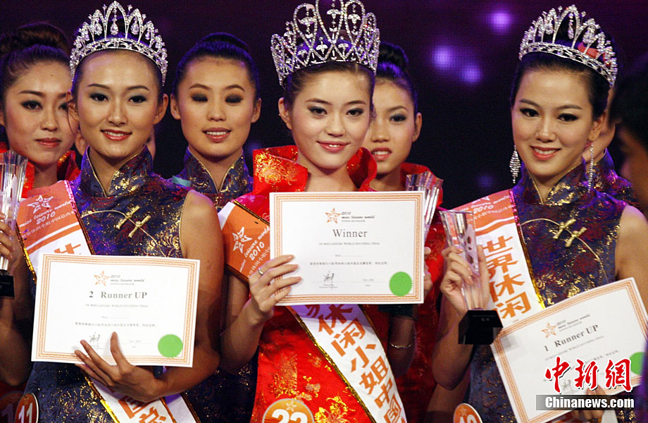 10月16日晚,由2010世界休閑小姐中國區總決賽組委會與中國廣西電視臺聯合主辦的“2010世界休閑小姐中國區總決賽”在廣西南寧舉行,29位佳麗通過活力休閑裝、泳裝、晚裝以及才藝展示等環節的角逐,最后程芊穎獲得冠軍、郭璇獲得亞軍、伍倩倩獲得季軍。中新社記者 錢興強 攝