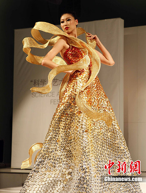 10月19日,北京服裝學院第六屆“科學·藝術·時尚”節開幕。此次活動將以往的“科學·藝術·服裝”正式更名為“科學·藝術·時尚”,融入了更多的時尚色彩,是歷屆活動中最豐富的一次。其中包括展示中、日、韓傳統服飾展和技藝交流;朝鮮時代韓服的美與流行;拼布藝術展;學生創意一條街等,全面體現了該校藝工融合的特色。圖為華彩意象—方·圓·盛時尚服裝秀展示最新潮流。中新社記者 任海霞 攝