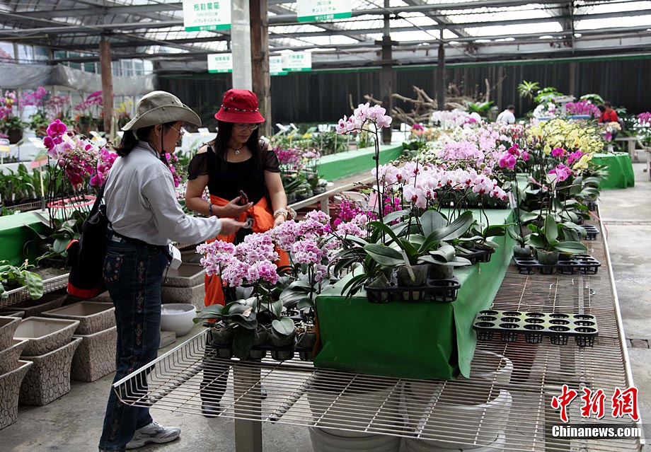 近日,記者隨參加臺灣觀光年會的臺灣區觀光協會聯合會成員行腳彰化縣鄉鎮景點,在地名特產店。圖為彰化縣大村鄉的臺大蘭園展售部。臺大蘭園成立于1981年,是最早將臺灣蝴蝶蘭出口到美國的公司之一,現為大村鄉知名景點。中新社記者 陳立宇 攝