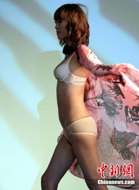 10月21日,中國某女性內衣品牌在上海舉行2011春夏新品發布會,率先推出“自在·零負擔”內衣,讓女性在即將到來的兔年中體驗“身體不受束縛,心靈自由放逸”的逍遙境界。 中新社記者 潘索菲 攝