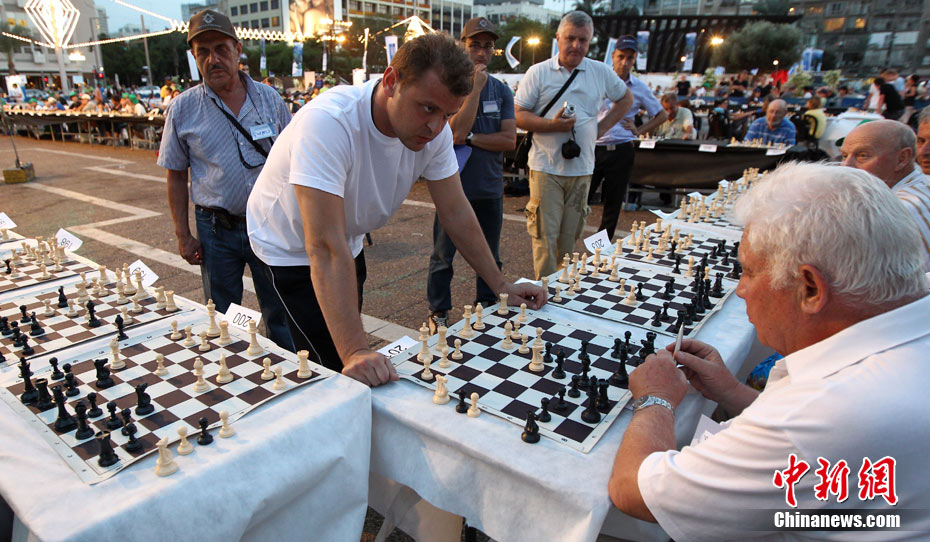 2010年10月21日,以色列特級大師格爾松在特拉維夫的拉賓廣場舉行國際象棋車輪戰(zhàn),與525名棋手對弈,沖擊去年夏天由伊朗大師馬約布創(chuàng)造的1對500名棋手的吉尼斯世界紀(jì)錄。