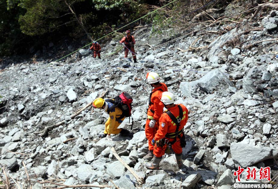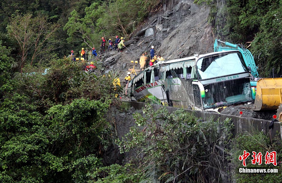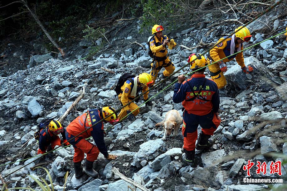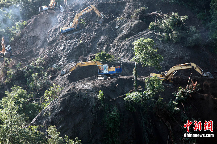 因臺風“鲇魚”(梅姬)及其帶來的豪雨造成崩塌困在蘇花公路上的大陸游客,至今仍有20人失蹤。24日記者幾經周折進至塌方最嚴重之一的116公里處。圖為被山崩和泥石流切斷后的蘇花公路。中新社記者 陳立宇 攝