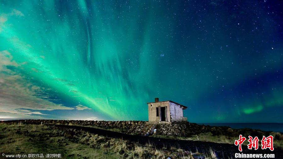 2010年10月25日消息,冰島攝影師Kristjan Unnar Kristjansson用九年時間捕捉到極光千變?nèi)f化的景象。圖片來源:CFP視覺中國