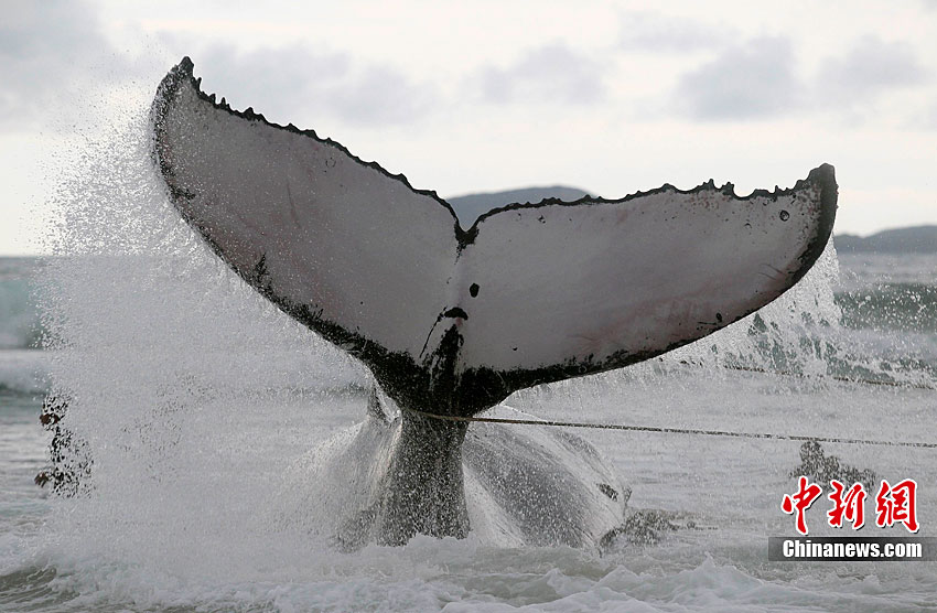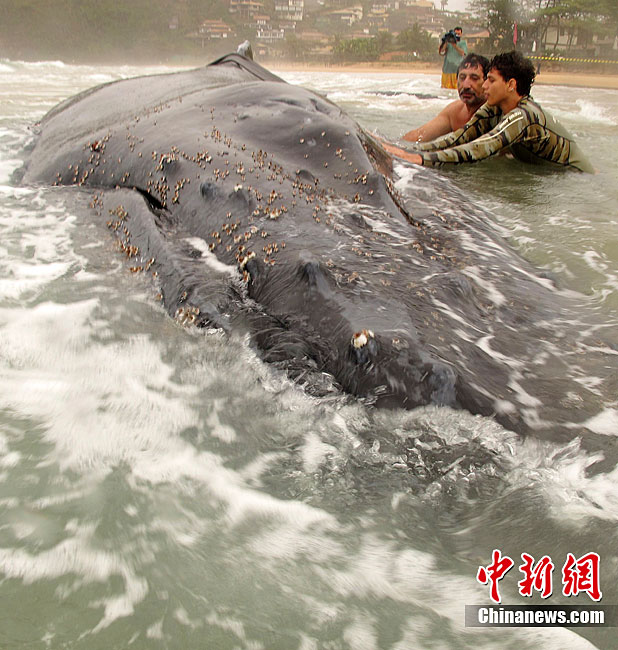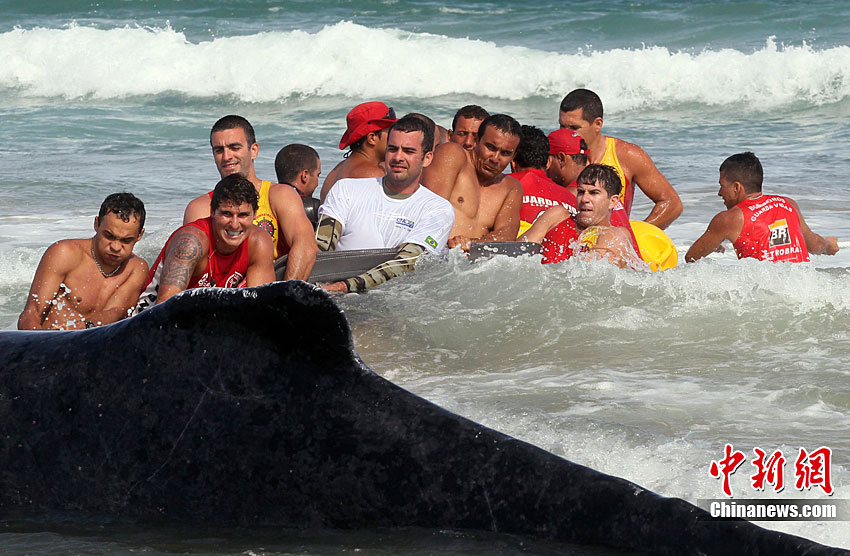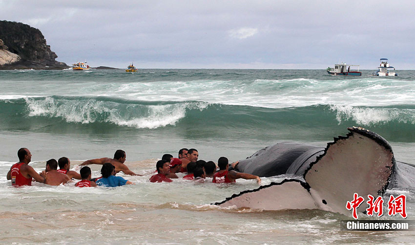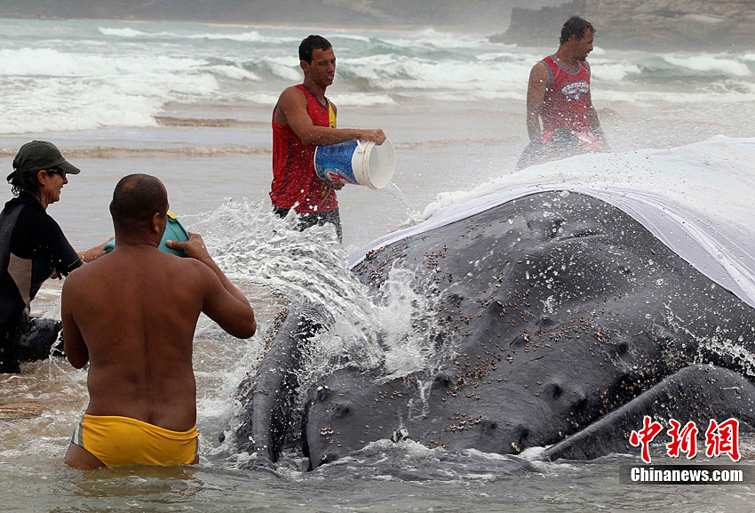 巴西救援人員拯救擱淺座頭鯨