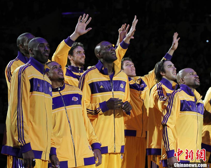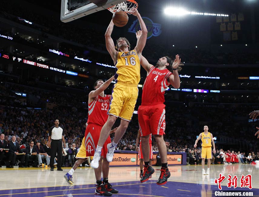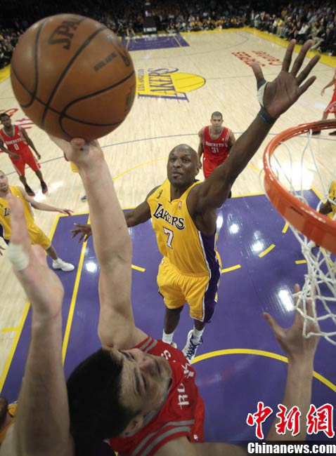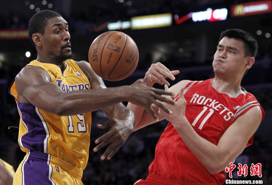 當地時間10月26日,洛杉磯,10/11NBA常規賽,休斯頓火箭客場110-112惜敗洛杉磯湖人。姚明出場23分21秒得到9分11個籃板,湖人隊科比拿下27分7次助攻。