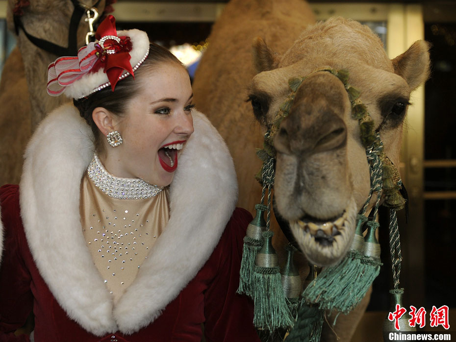 10月26日,美國“火箭女郎”舞蹈團攜駱駝、綿羊等動物一起出現(xiàn)在紐約無線電城前,為即將到來的圣誕大匯演造勢。今年的無線電城圣誕大匯演將于11月5日至12月30日舉行。