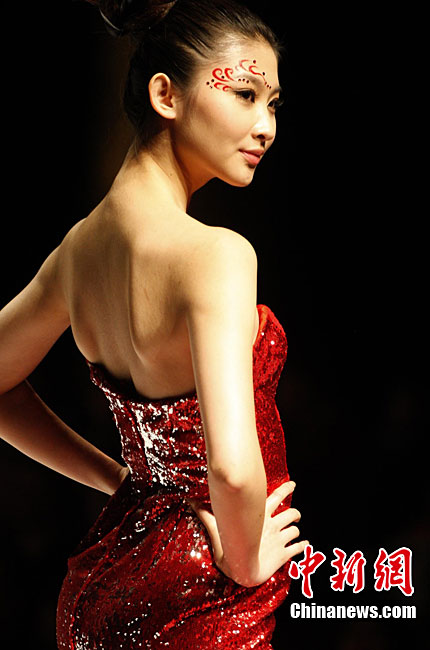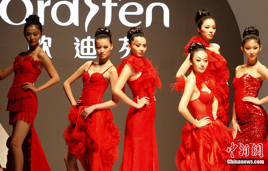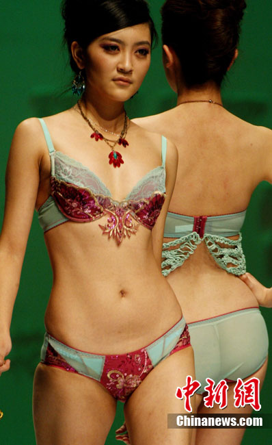 10月28日, 2010“歐迪芬杯”中國內衣設計大賽在北京舉行,20位沖過初賽、復賽層層挑戰的選手們,聚集在中國內衣設計的最高賽場,用創意與靈感展開激烈角逐。圖為模特展示“明門之秀”主題內衣設計作品。中新社記者 錢興強 攝