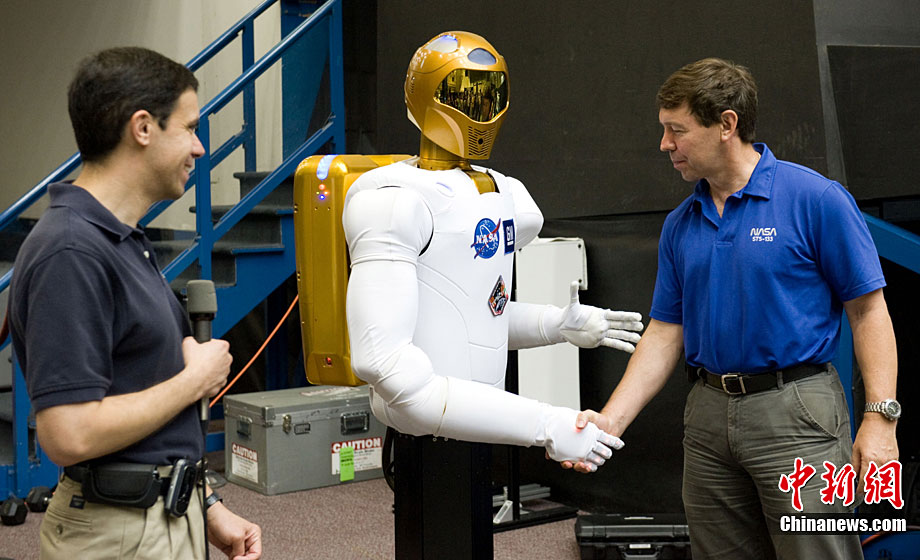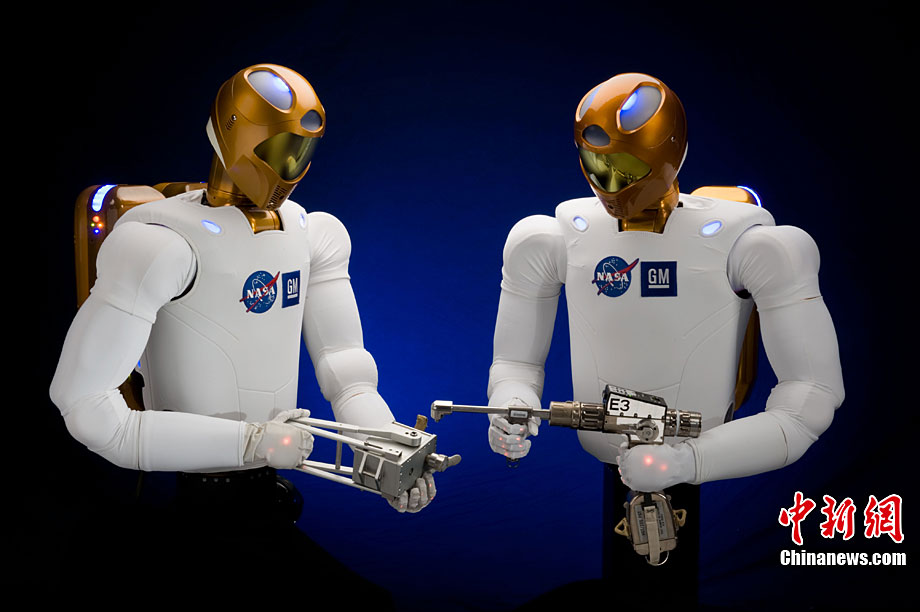 全球首個太空機器人(左)定于11月3日跟隨美國“發現”號航天飛機前往國際空間站,在那里度過自己的“一生”,它將在國際空間站完成一系列測試工作。據機器人設計者表示,它將在國際空間站完成一系列測試工作,但它的“后代”或許可以承擔太空行走、外星探險等更加復雜、危險的任務。