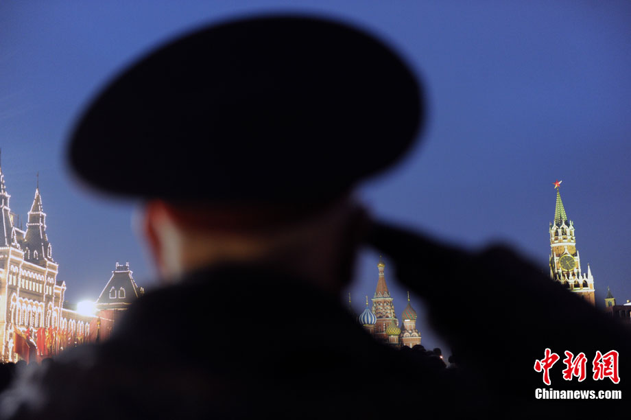 11月3日,準備參加紅場閱兵的士兵在俄羅斯首都莫斯科進行彩排。11月7日俄羅斯將在莫斯科紅場舉行盛大閱兵儀式,紀念1941年11月7日的紅場閱兵69周年。