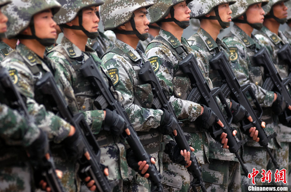 圖為中方步兵參加開訓(xùn)儀式。中新社發(fā) 任東 攝