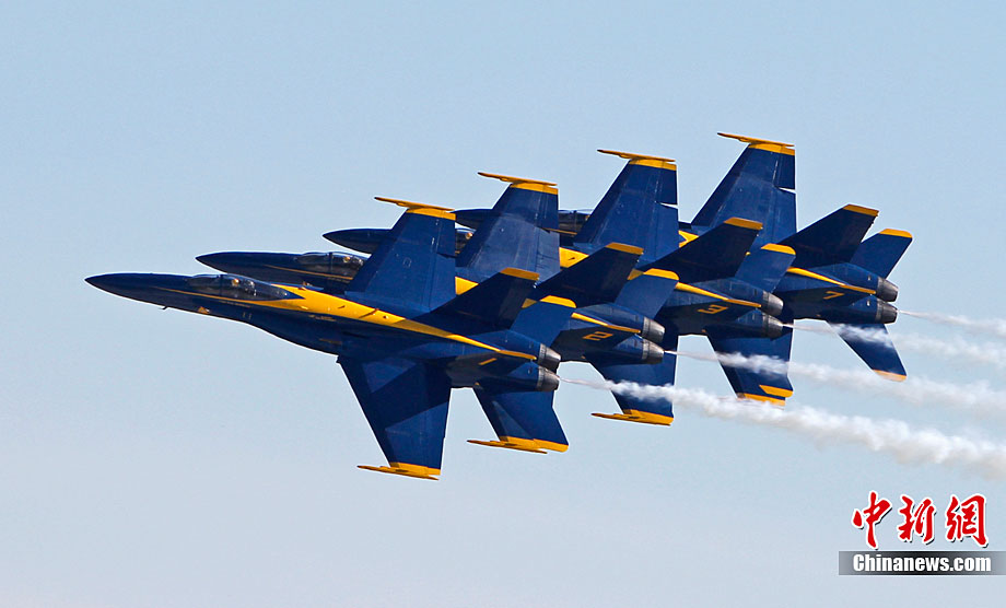 當地時間11月5日,美國邁阿密近郊的霍姆斯帝德空軍儲備基地為當地居民和游客上演了精彩絕倫航空飛行表演。世界上最優秀的特技飛行表演隊之一,同時也是目前世界上唯一一支屬于海軍航空兵的飛行表演隊--美國海軍“藍天使”飛行表演隊駕駛f/a-18“大黃蜂”戰斗機,翱翔藍天,上演令人驚嘆,眼花繚亂的空中特技。