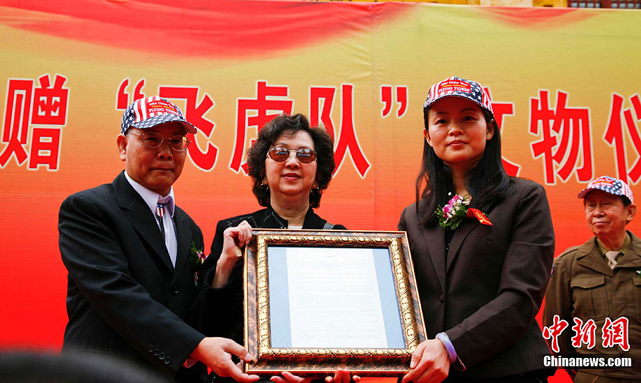 11月9日,由知名僑領(lǐng)陳燦培向昆明市捐贈的1100件飛虎隊文物在云南陸軍講武堂展出。創(chuàng)立于上個世紀40年代的飛虎隊,又稱中國空軍美國志愿援華航空隊。在抗日戰(zhàn)爭中對日作戰(zhàn),運送物資,戰(zhàn)果累累。圖為參觀展覽的空軍官兵。中新社記者 劉冉陽 攝