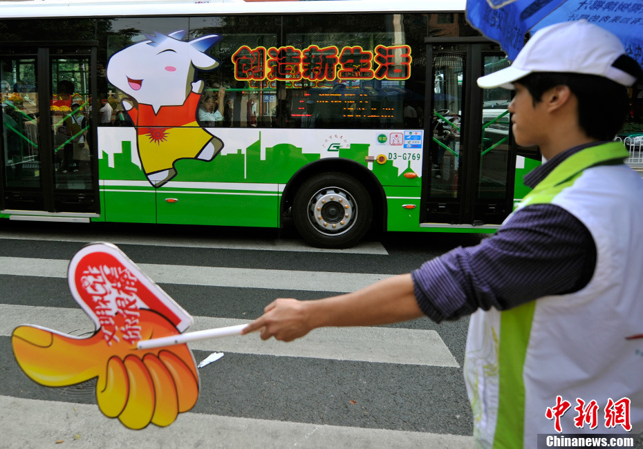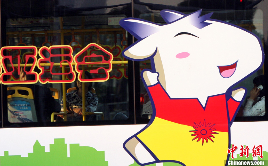 11月9日,隨著第16屆亞運會的臨近,廣州街頭亞運氛圍漸濃。亞運元素成為廣州街頭一道美麗風景。中新社記者 湯彥俊 攝