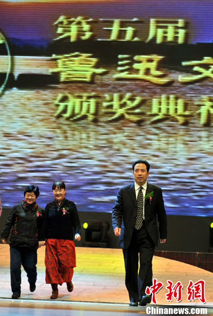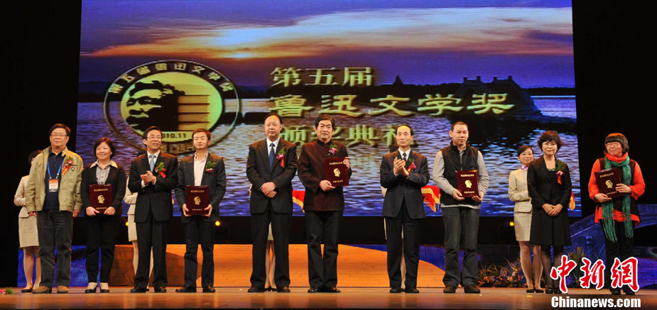 11月9日晚,第五屆魯迅文學獎頒獎典禮在魯迅故鄉(xiāng)浙江紹興舉行。30位魯迅文學獎得主分別獲得報告文學、散文雜文、詩歌、評論、中篇小說、短篇小說等類別的獎項。武漢市紀委書記車延高的詩集《向往溫暖》摘得魯迅文學獎詩歌獎項。袁云 攝