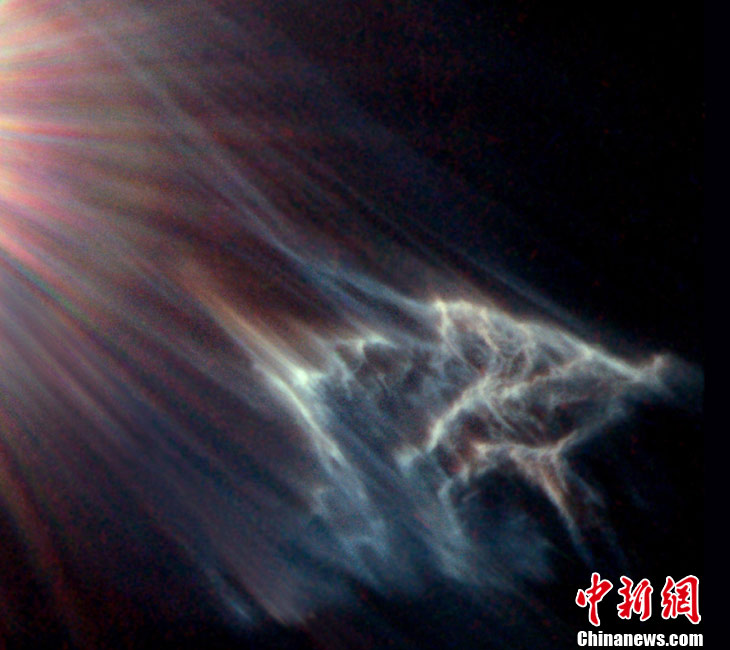 11月9日,美國(guó)宇航局前公布的照片顯示,昴星團(tuán)附近的氣體及塵埃云正遭到星光緩慢的破壞。在過(guò)去的10萬(wàn)年間,這團(tuán)塵埃云偶然移動(dòng)到了離昴星團(tuán)非常近的地方——距離僅為地球到太陽(yáng)距離的3500倍,從而被該星團(tuán)排斥。
