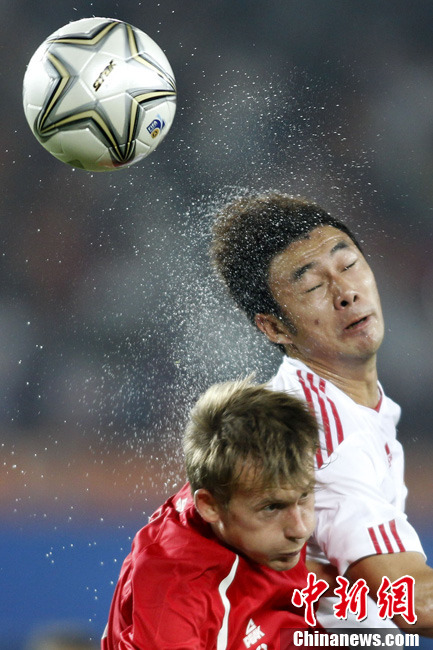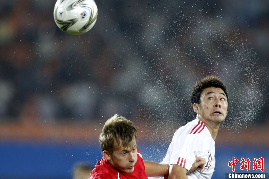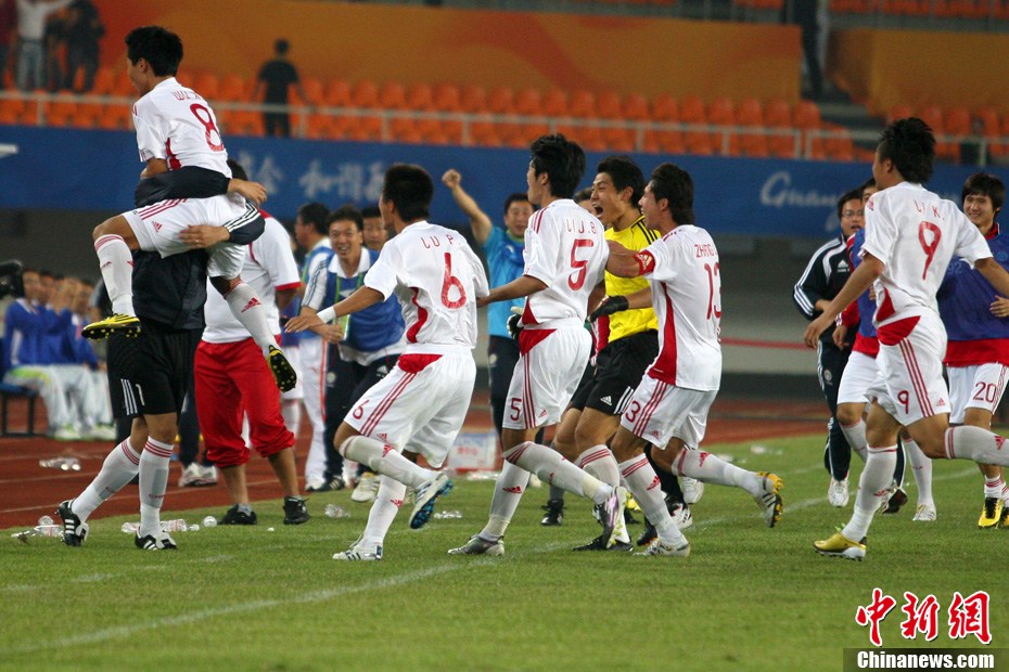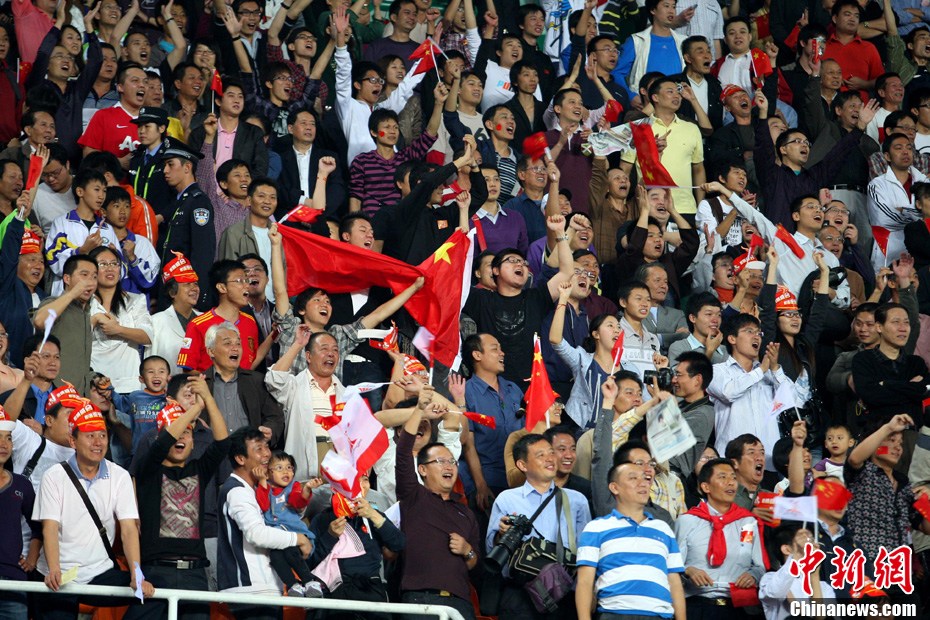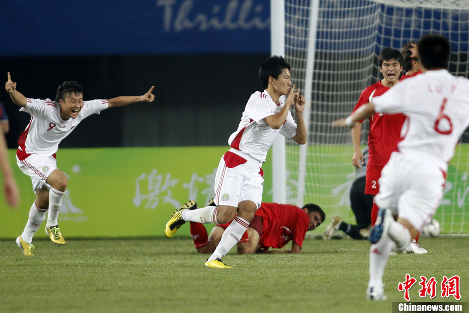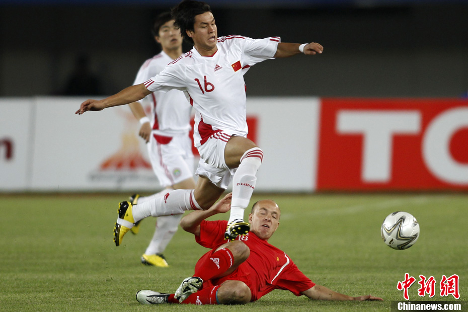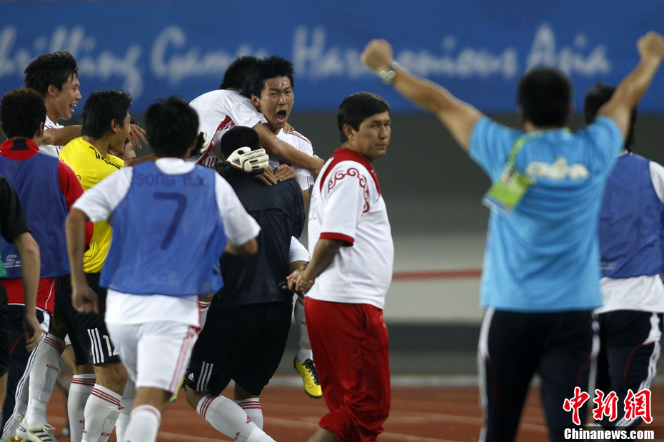 11月10日晚,廣州亞運會男子足球小組賽A組第19場中國與吉爾吉斯斯坦的比賽在廣州天河體育場進行,最終中國隊2:1戰(zhàn)勝吉爾吉斯斯坦隊。中新社記者 富田 攝