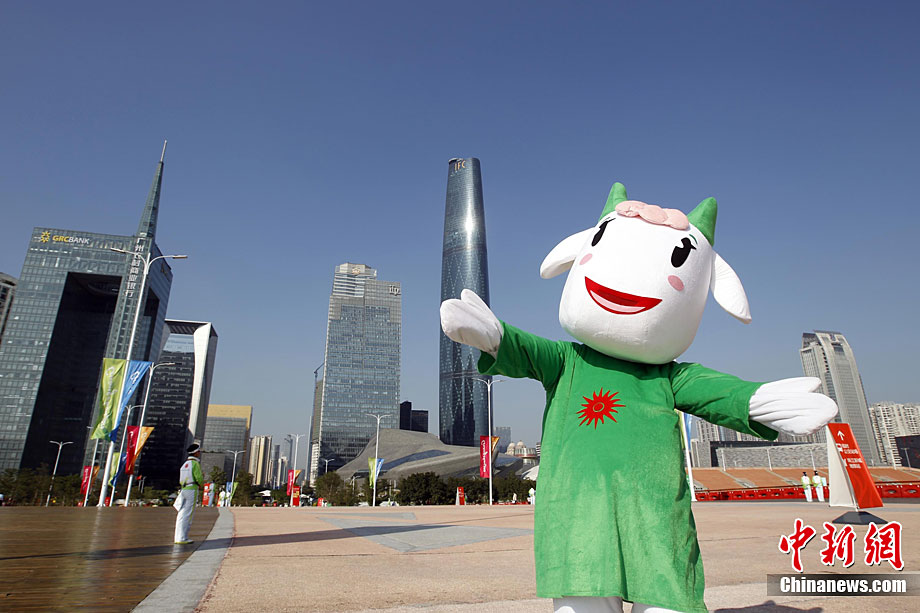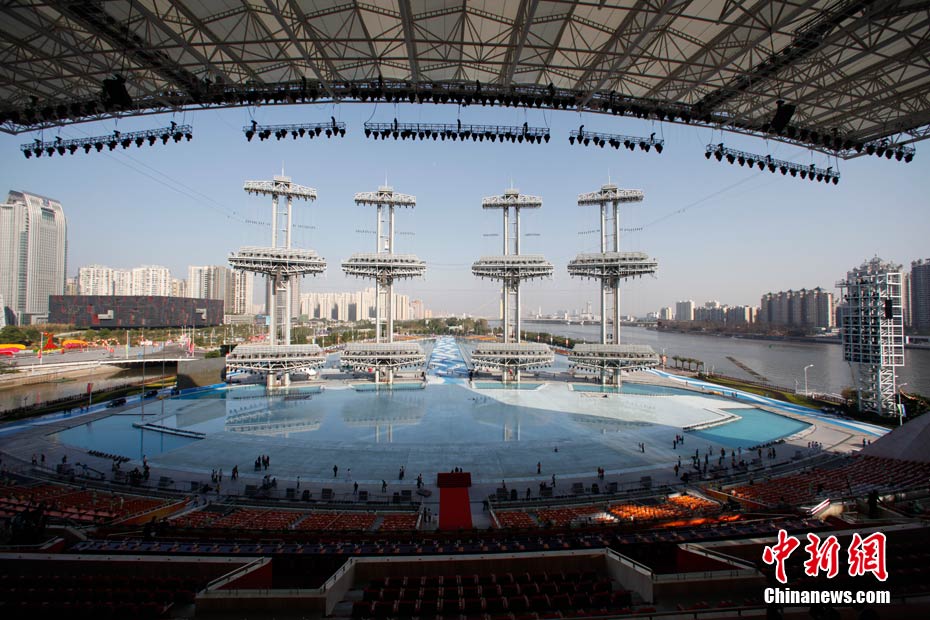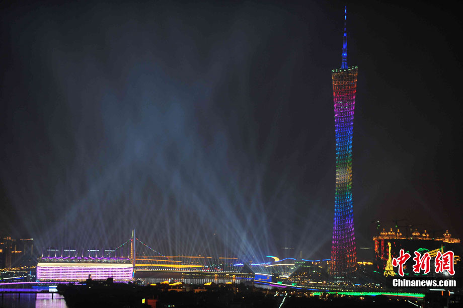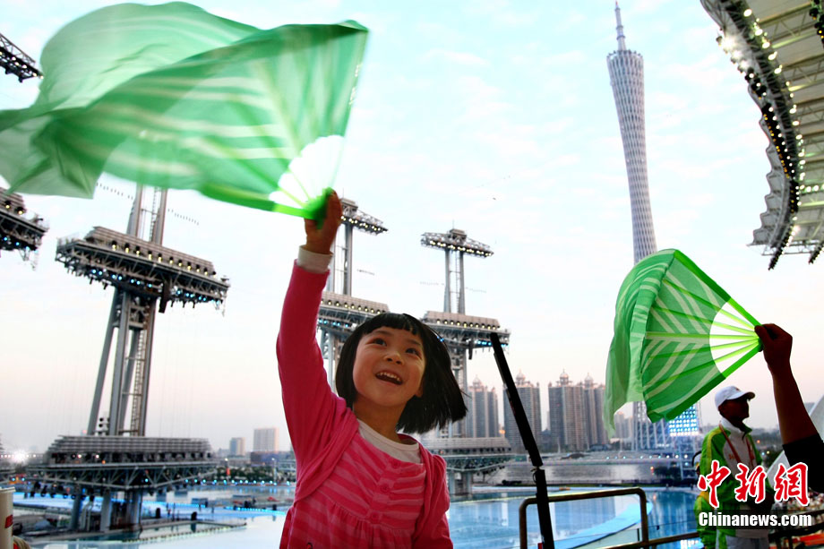 2010年11月12日,廣州海心沙島,16屆亞運(yùn)會(huì)開(kāi)幕式今晚將在這里舉行。中新社記者 盛佳鵬 攝。
