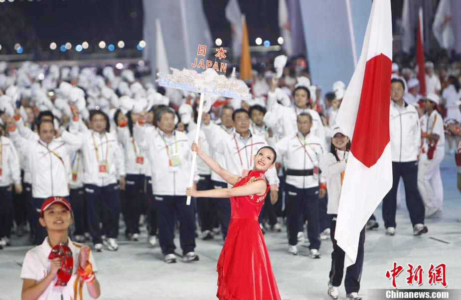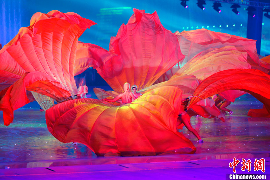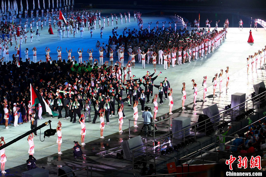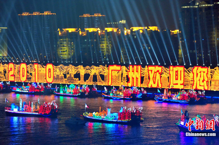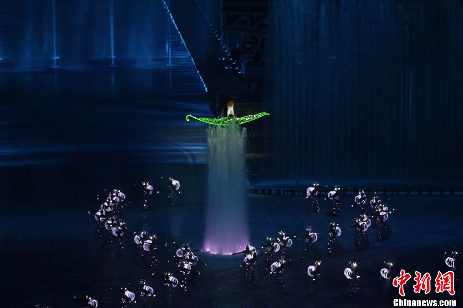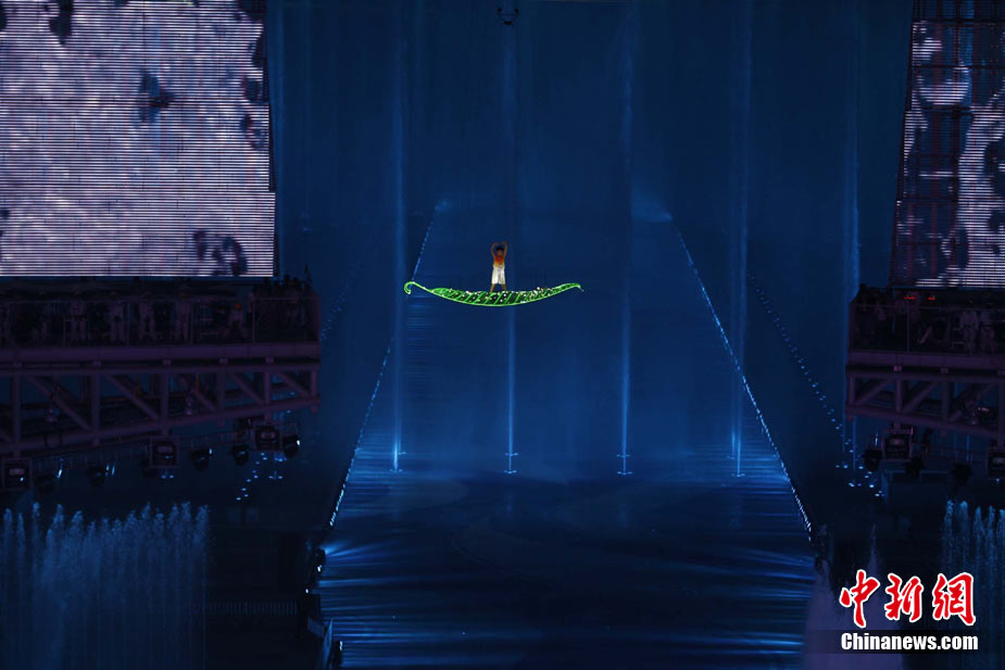 11月12日晚,廣州亞運會開幕。圖為亞運圣火主火炬點燃。中新社記者 富田 攝