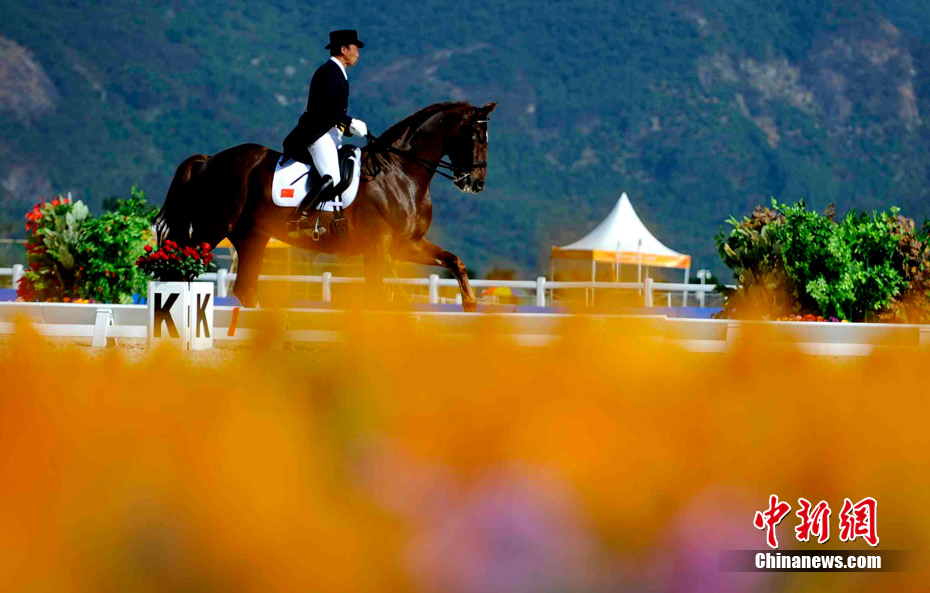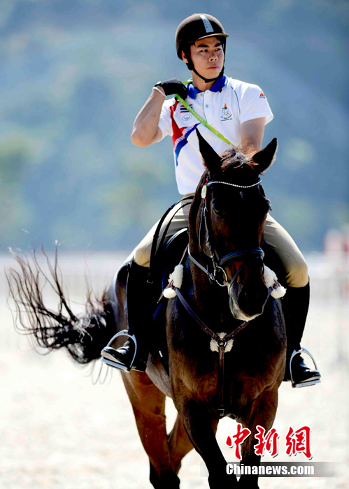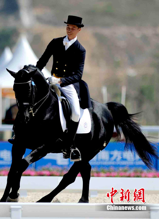 11月14日,廣州亞運(yùn)馬術(shù)比賽在廣州馬術(shù)場(chǎng)舉行,這個(gè)號(hào)稱亞運(yùn)最昂貴的比賽項(xiàng)目上駿馬、美女、帥哥齊全,據(jù)悉,比賽中的馬匹最少都要幾百萬人民幣,有的更高達(dá)幾千萬,參賽選手也云集了阿拉伯國(guó)家的皇室貴族和富豪。中新社記者 王東明 攝